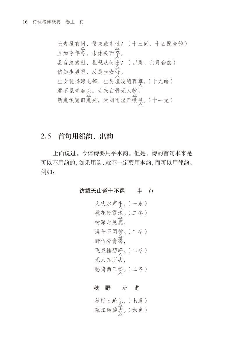 补了“附录”部分。“概要”部分全面讲述诗词格律基础知识,