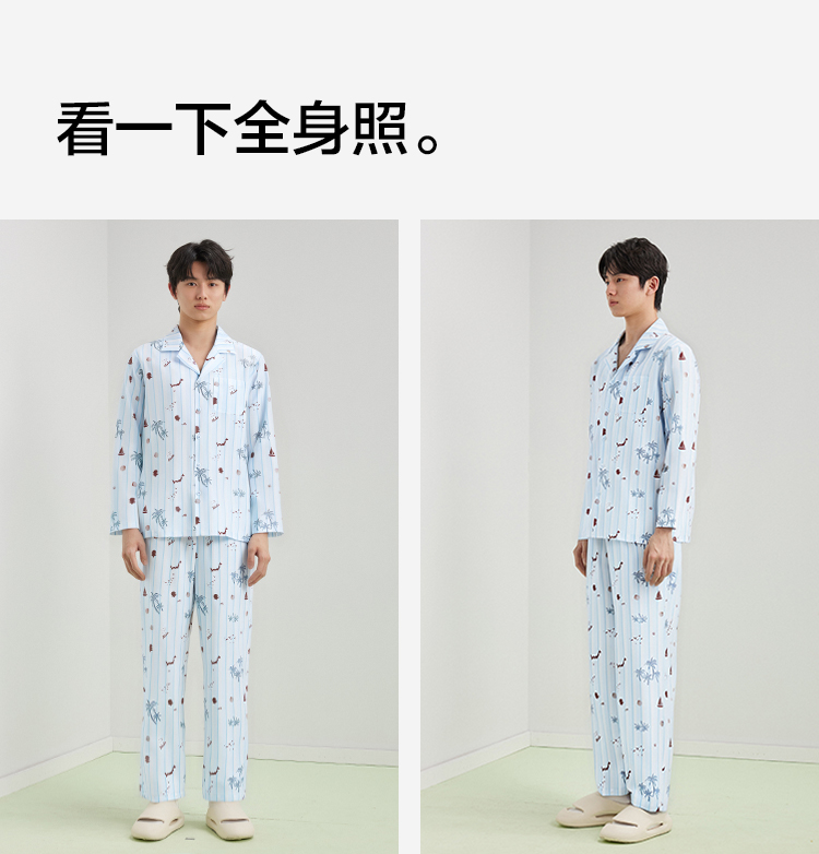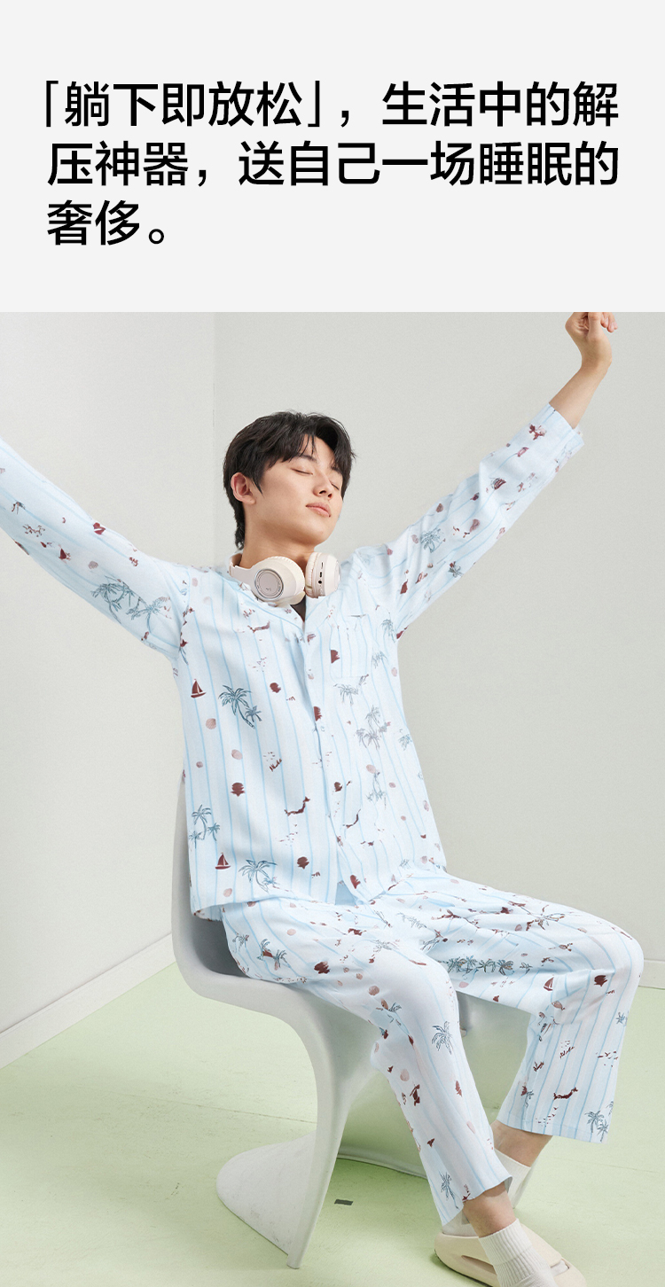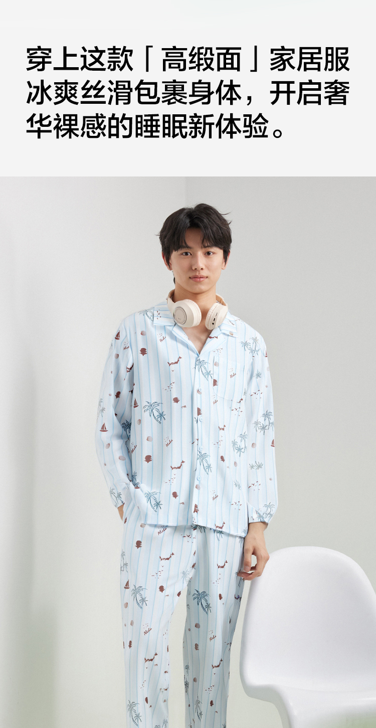 【L-3XL】【有棵树】男士凉感亲肤开衫家居服套装