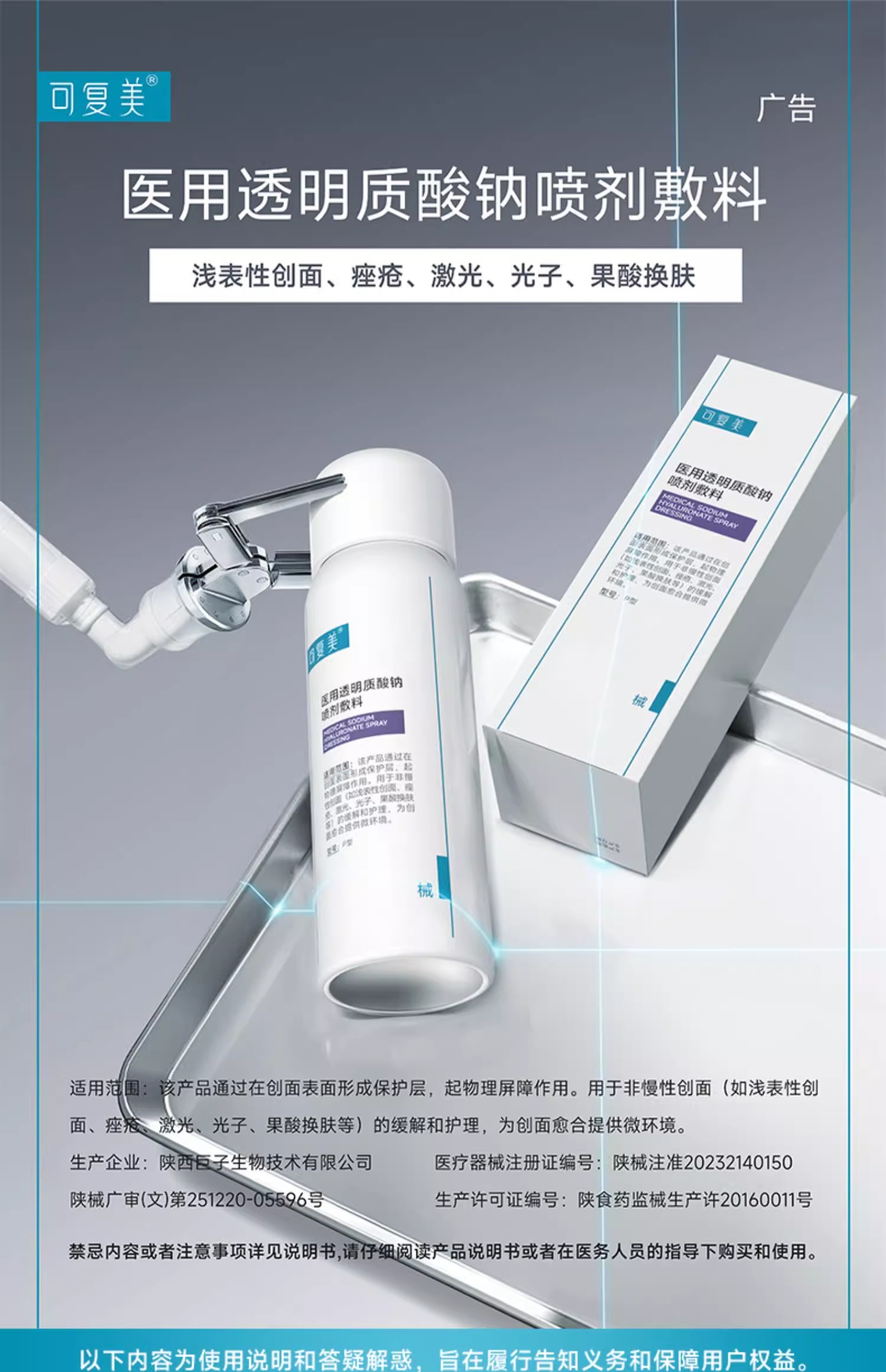 可复美医用透明质酸钠喷剂敷料物理屏障创面愈合50mL
