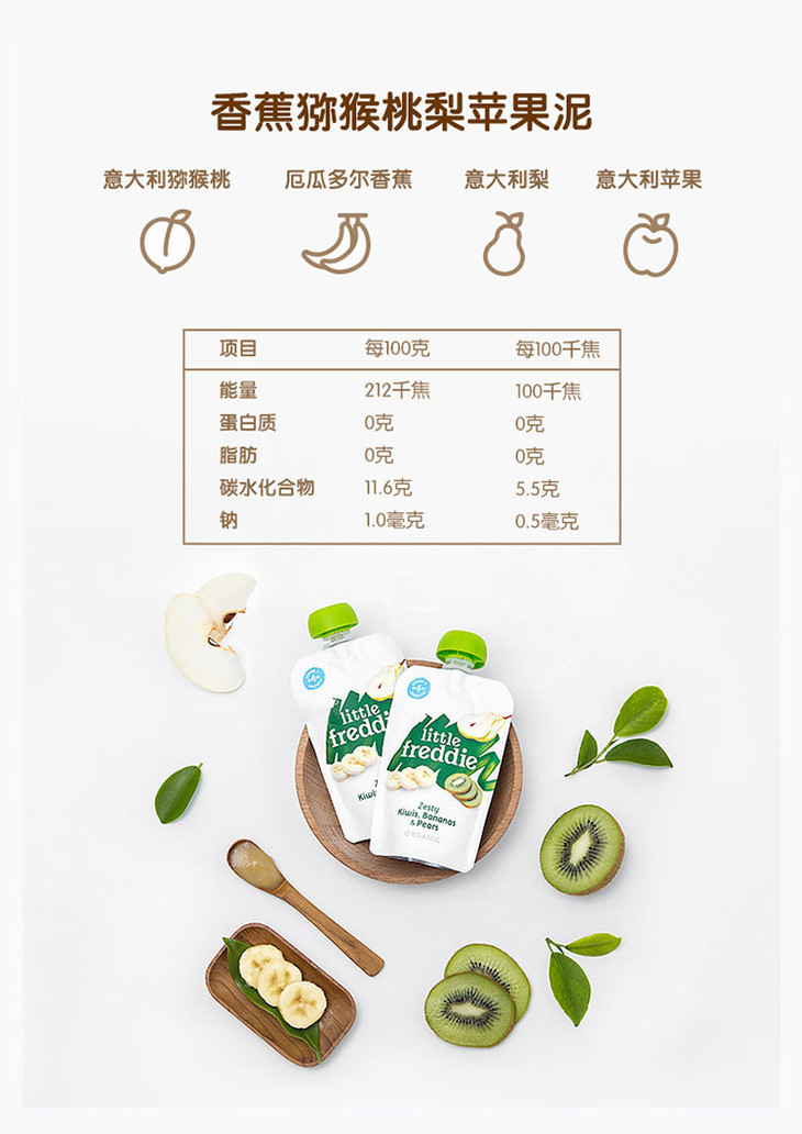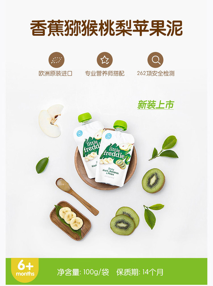 LittleFreddie小皮香蕉猕猴桃梨苹果泥100g