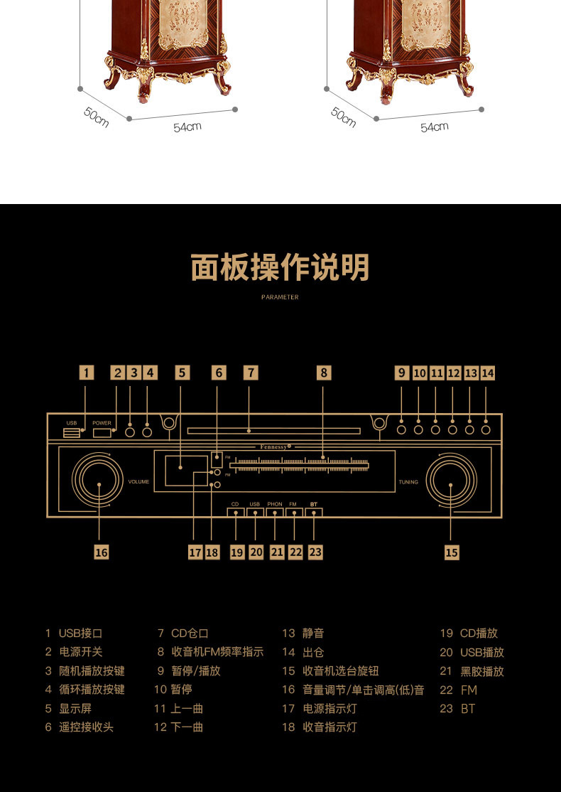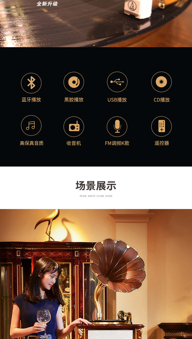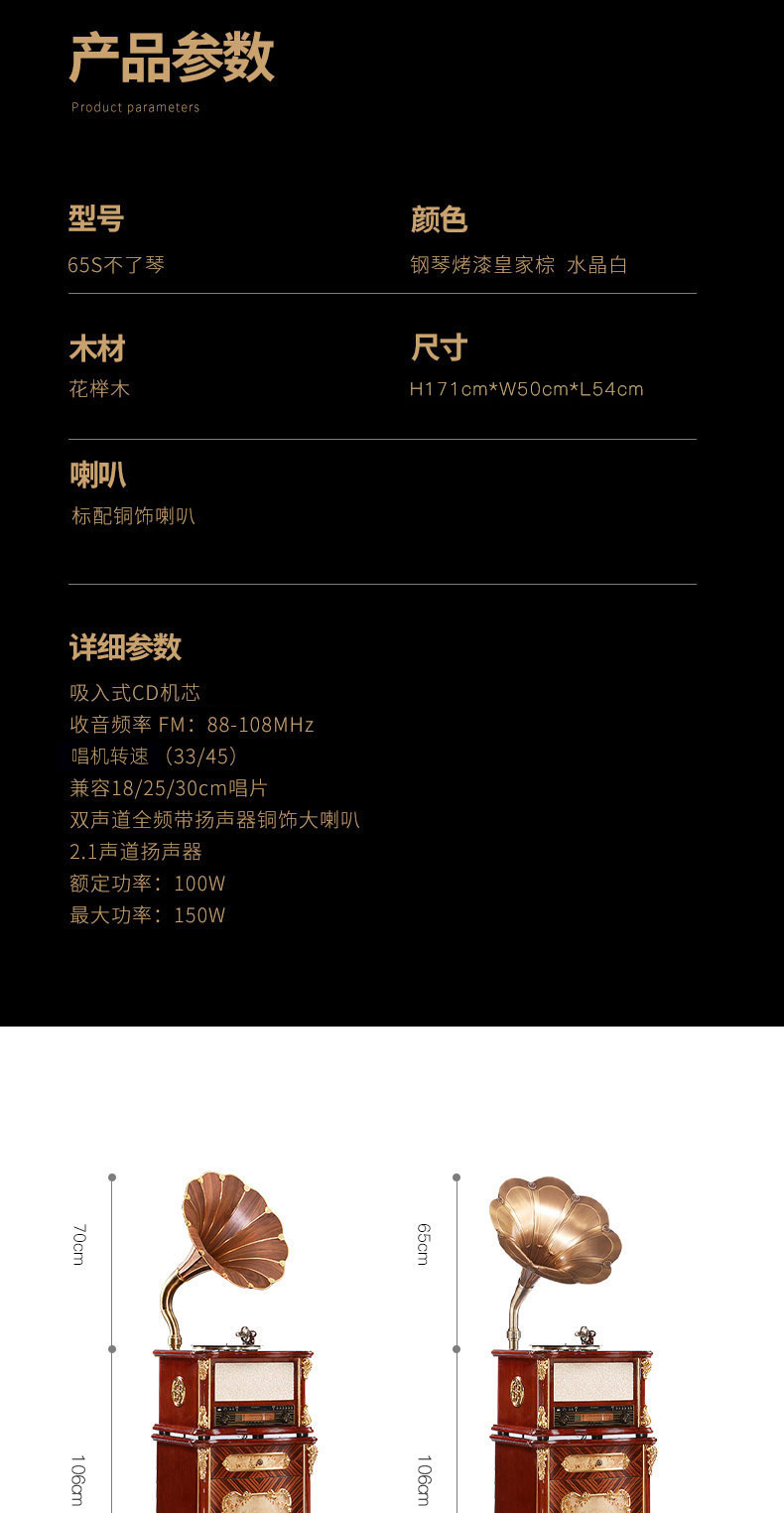Fennessy/梵尼诗 65S不了琴HiFi留声机 复古大喇叭 黑胶唱片机音响