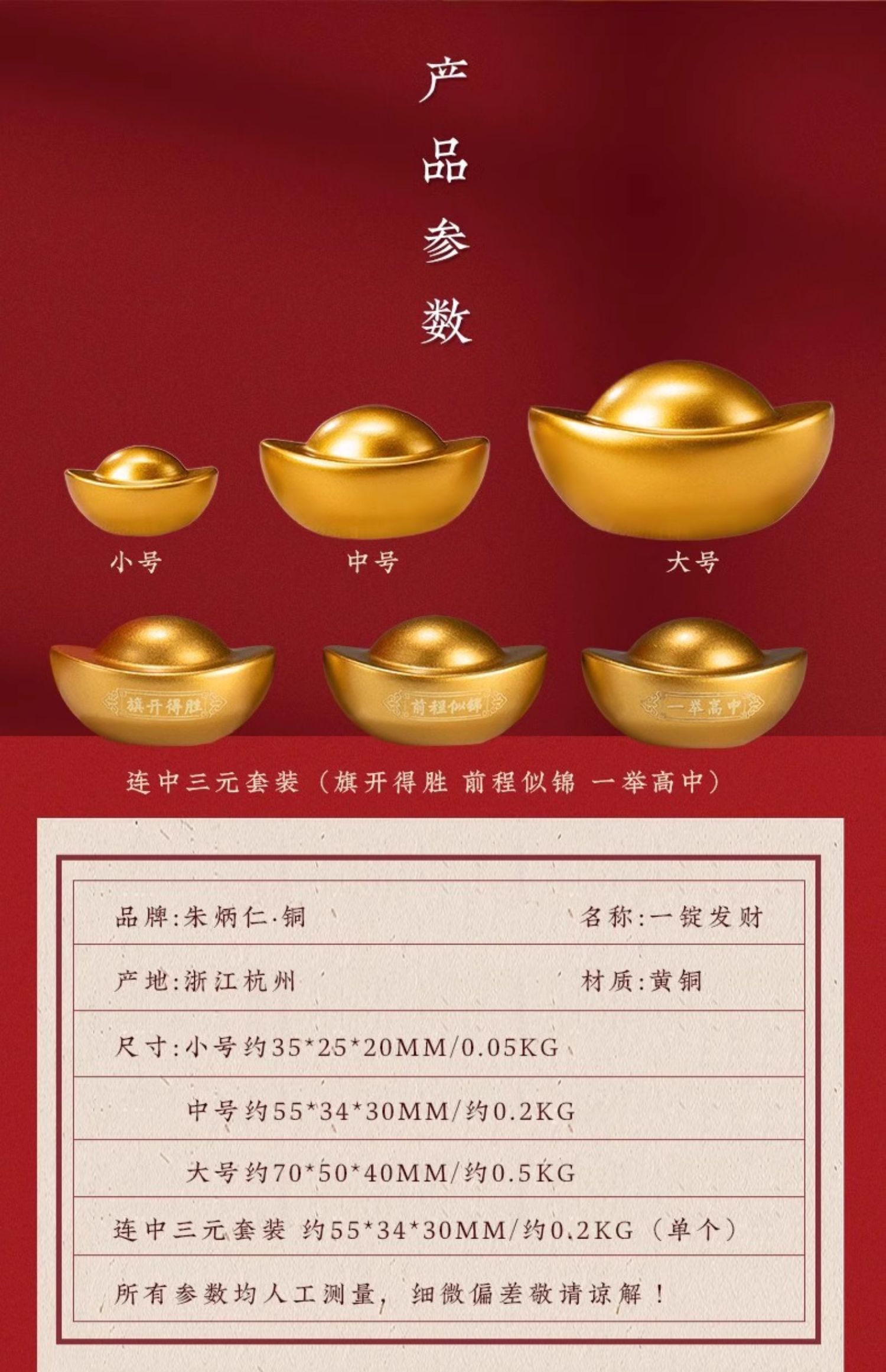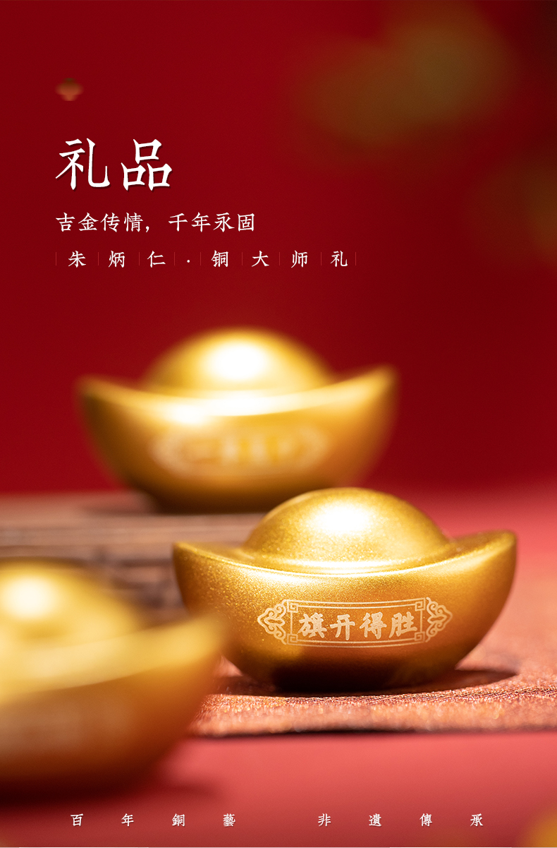 朱炳仁铜 元宝 中号大号 一锭发财元宝桌面乔迁礼品礼物聚宝盆装饰品玄学小摆件