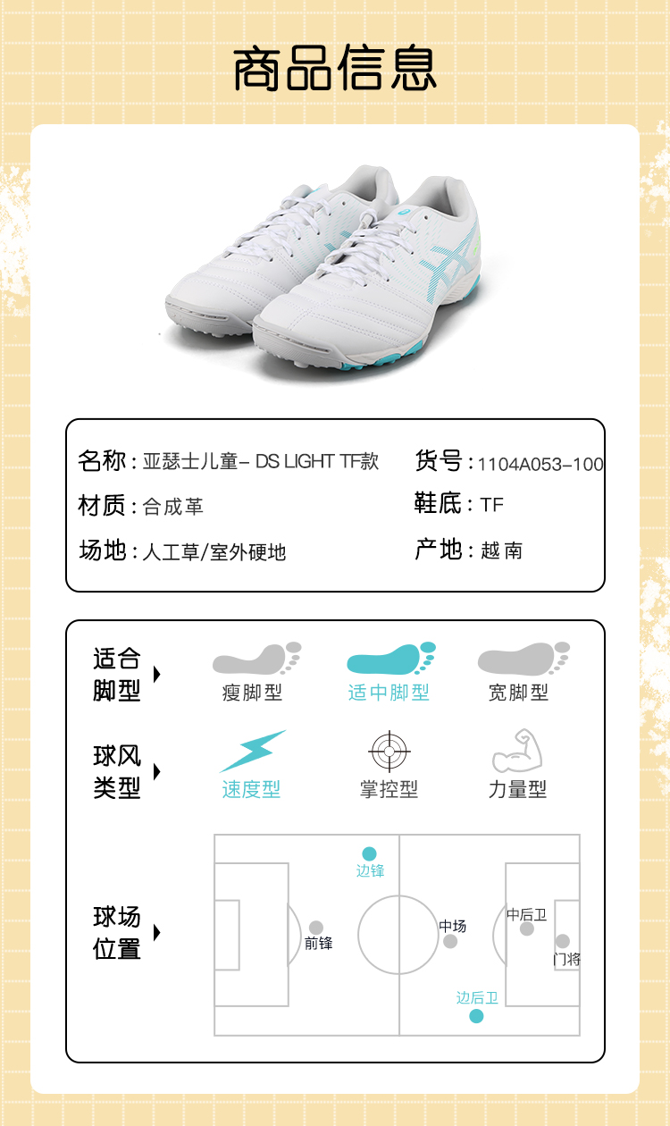 小李子亚瑟士儿童足球鞋TF碎钉学生校园训练球鞋比赛男女孩人草