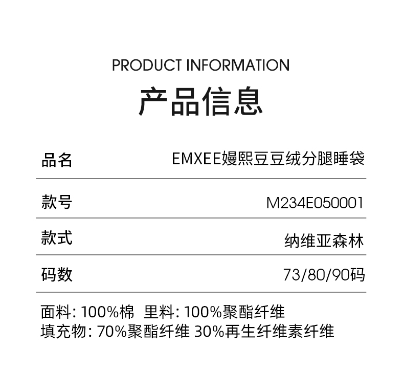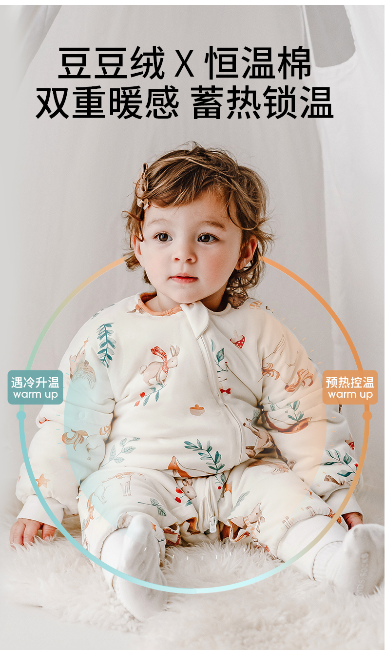 【宝宝安睡】EMXEE嫚熙婴儿豆豆绒睡袋秋冬款恒温纯棉