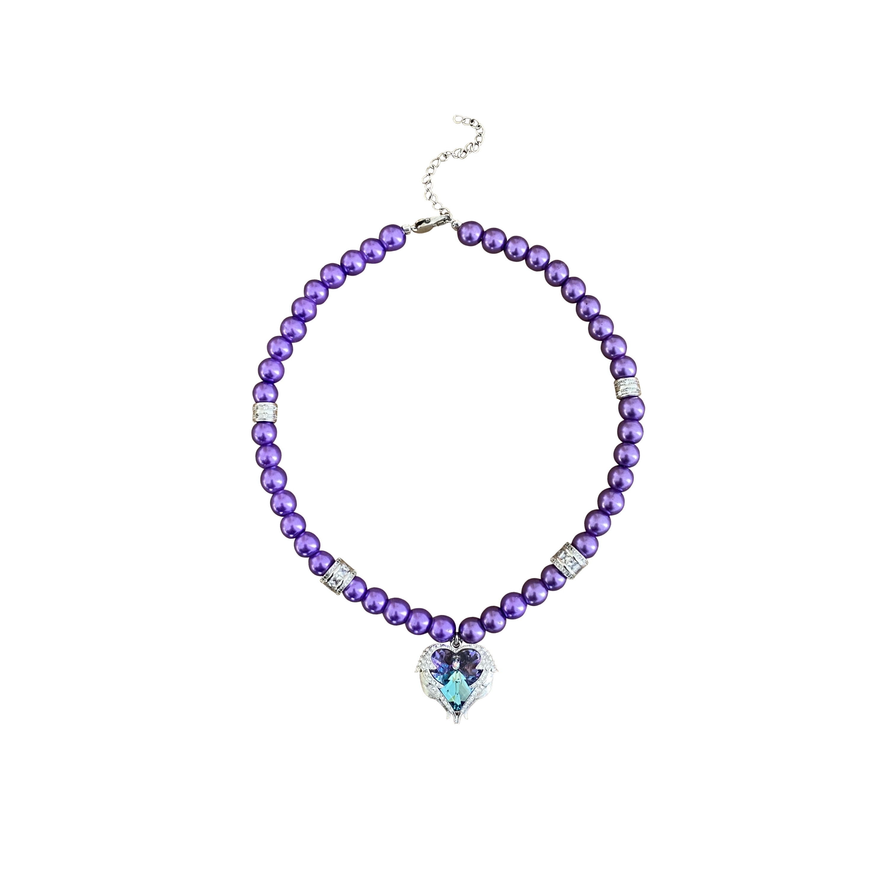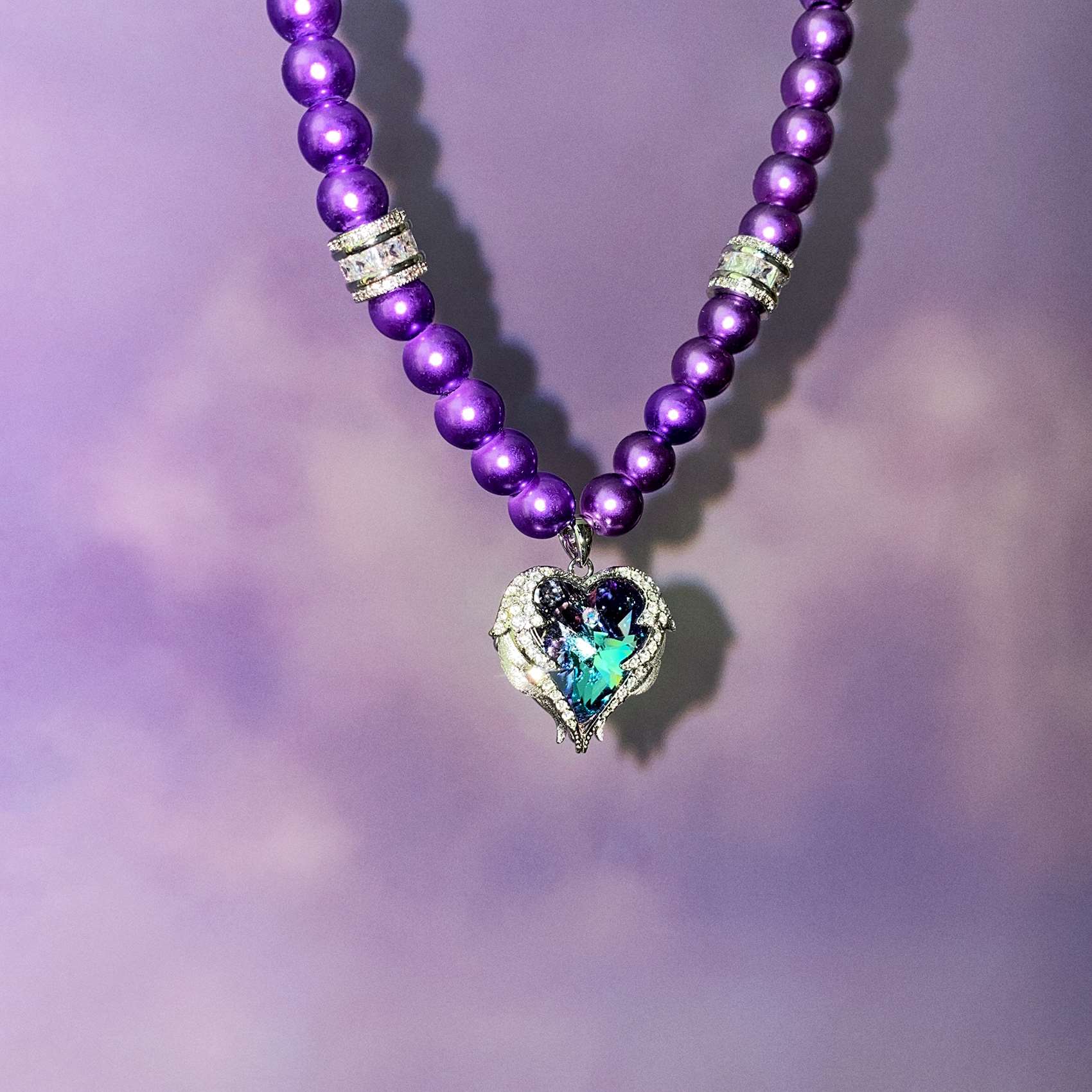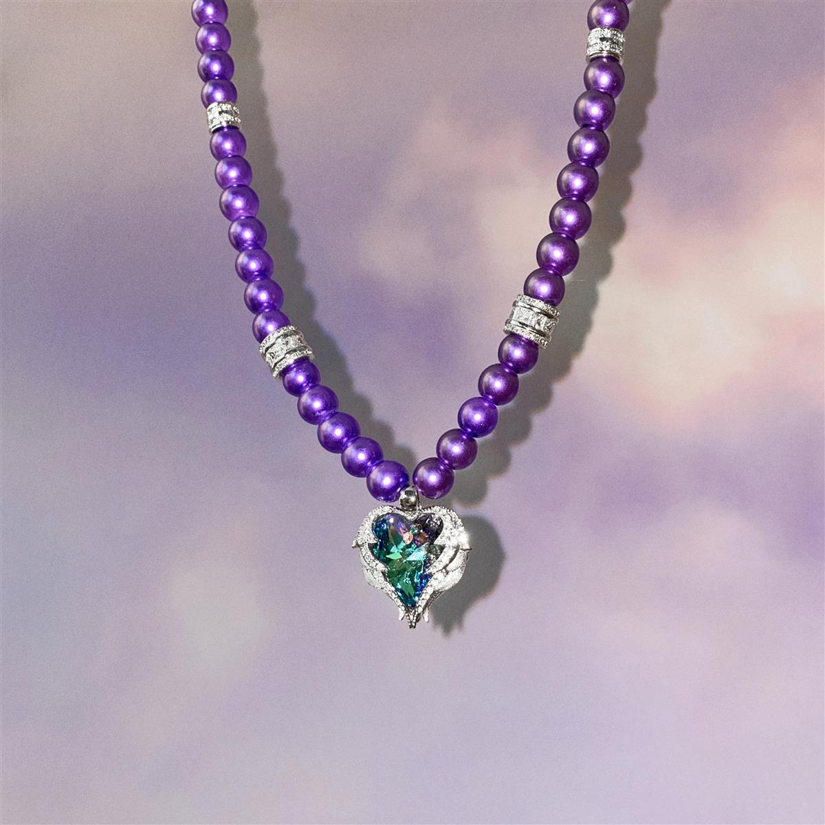 no dentity 原创设计复古镶钻水晶爱心紫色珍珠千禧y2k项链锁骨链