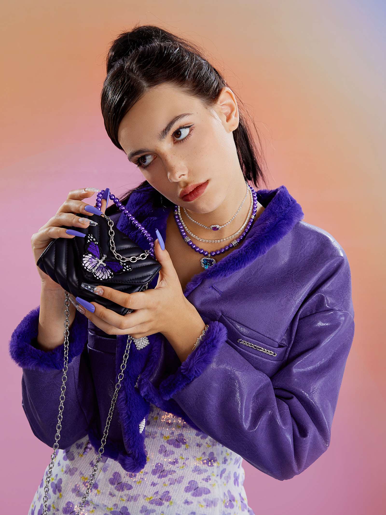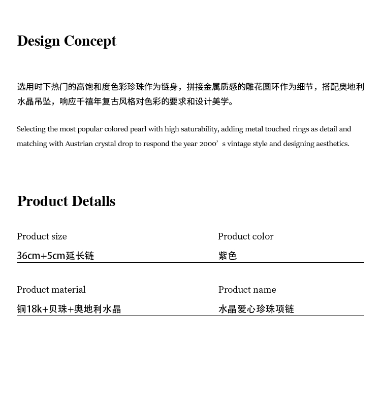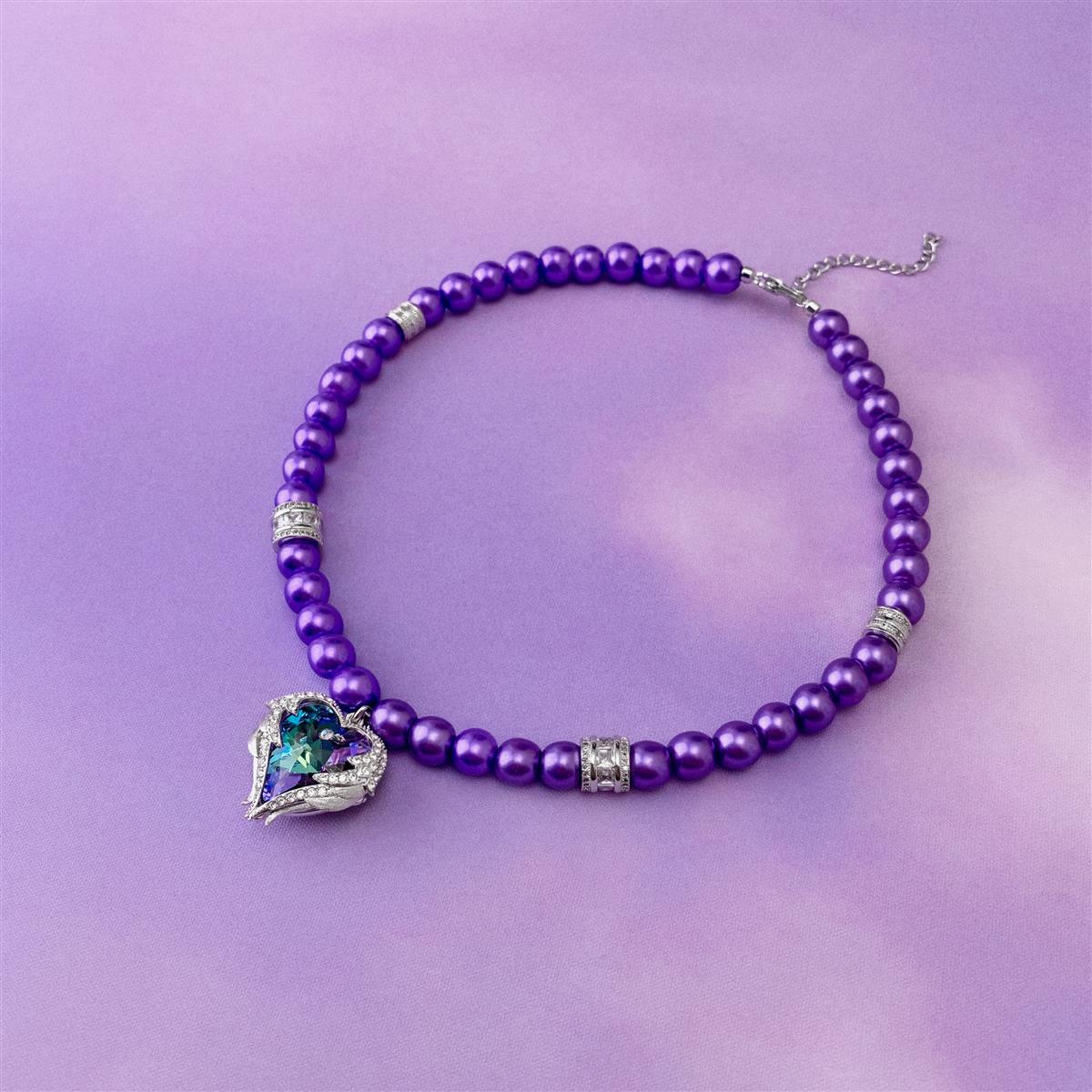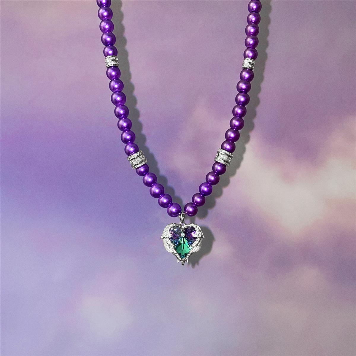 no dentity 原创设计复古镶钻水晶爱心紫色珍珠千禧y2k项链锁骨链