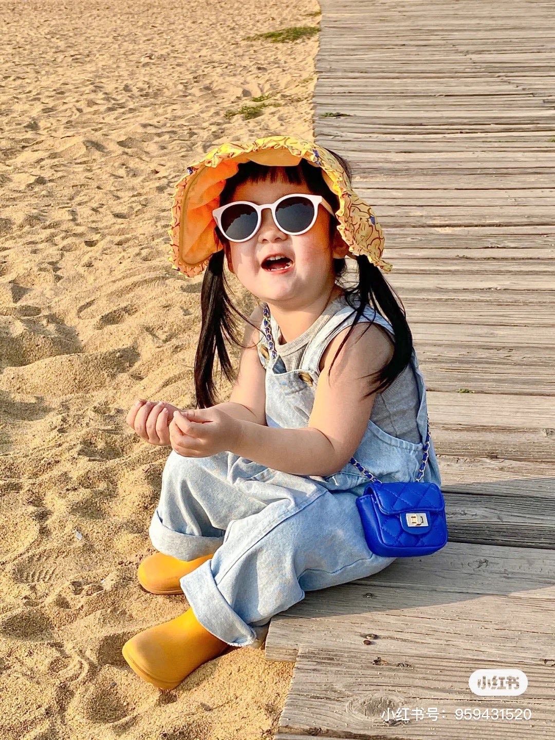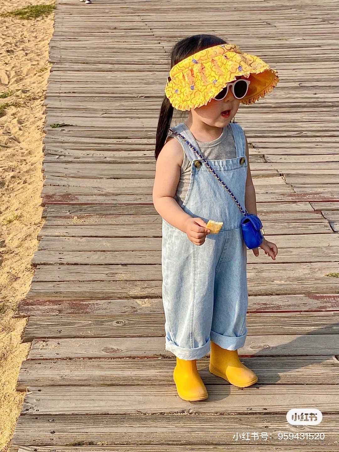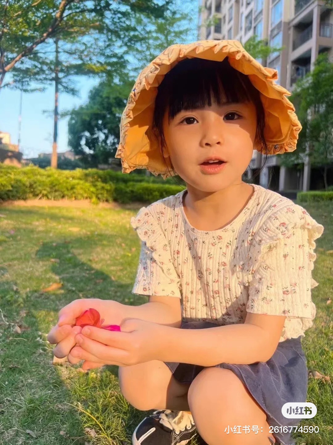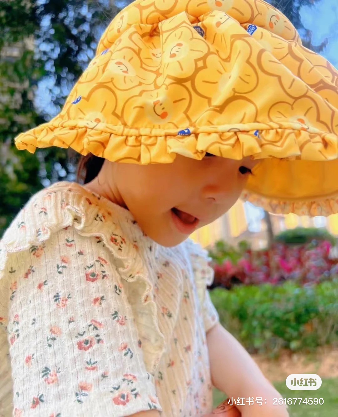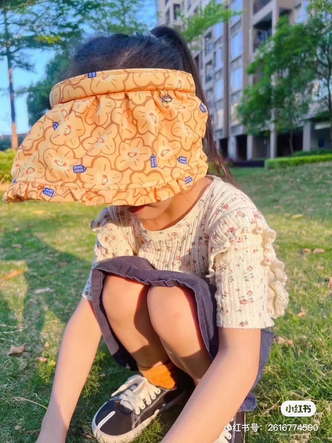 太阳有点大还好有给萌准备了防晒帽子