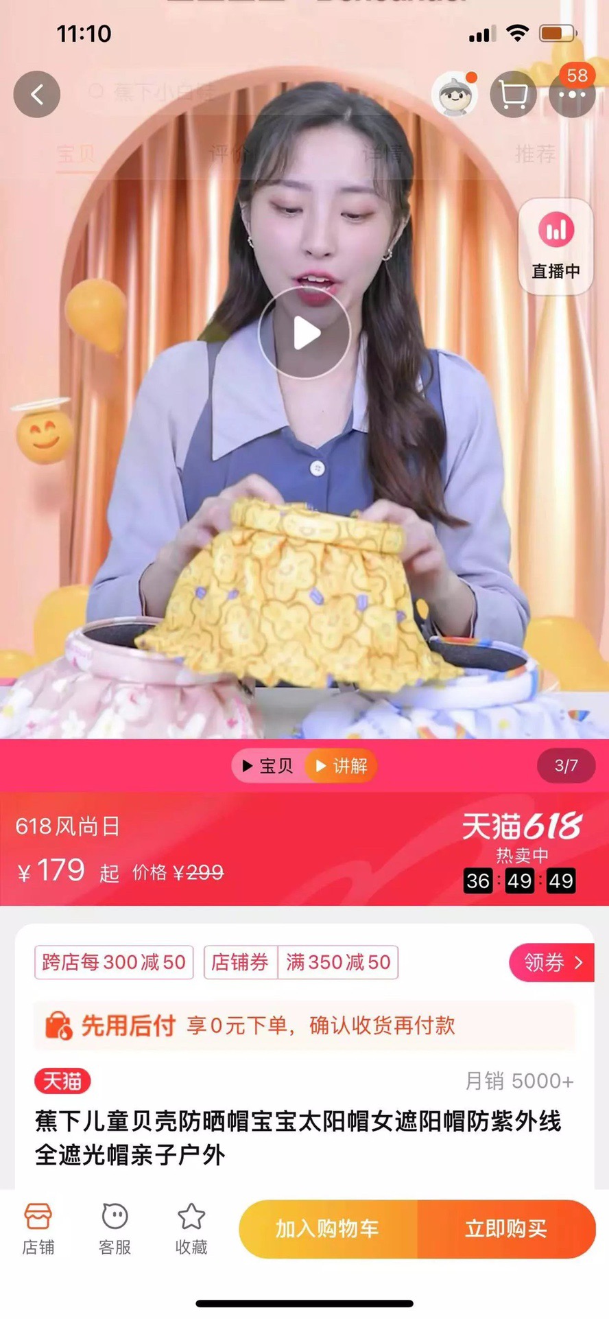 💰59元包邮, 蕉下正品 T猫179 UPF50+【蕉下宝宝防晒帽】