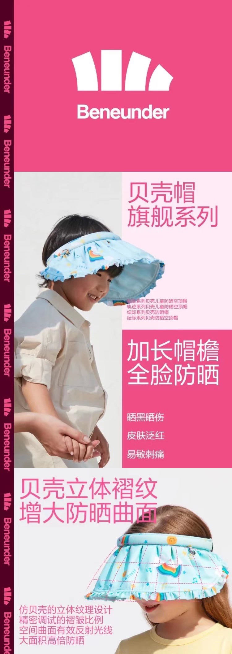 贝壳立体褶皱可以增大防晒曲面,防止宝贝肌