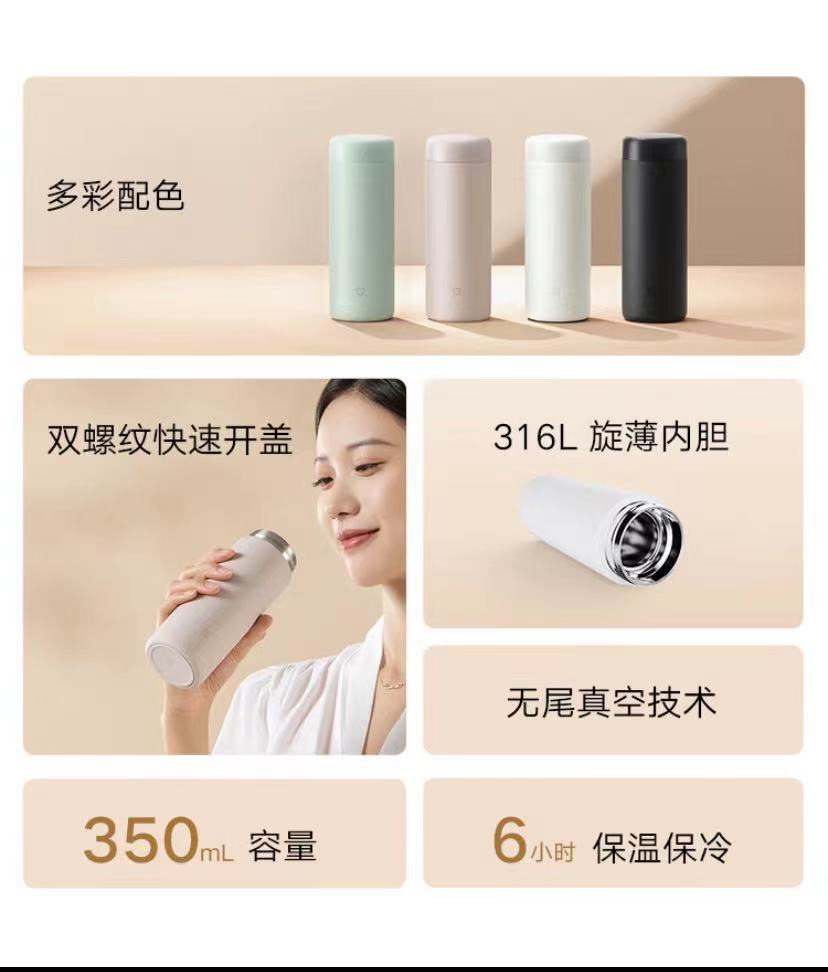 米家保温杯316不锈钢水杯 男女士杯子大容量 茶杯便携350ml