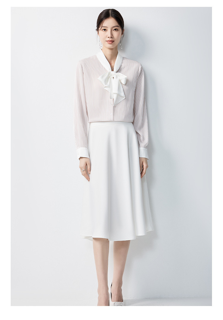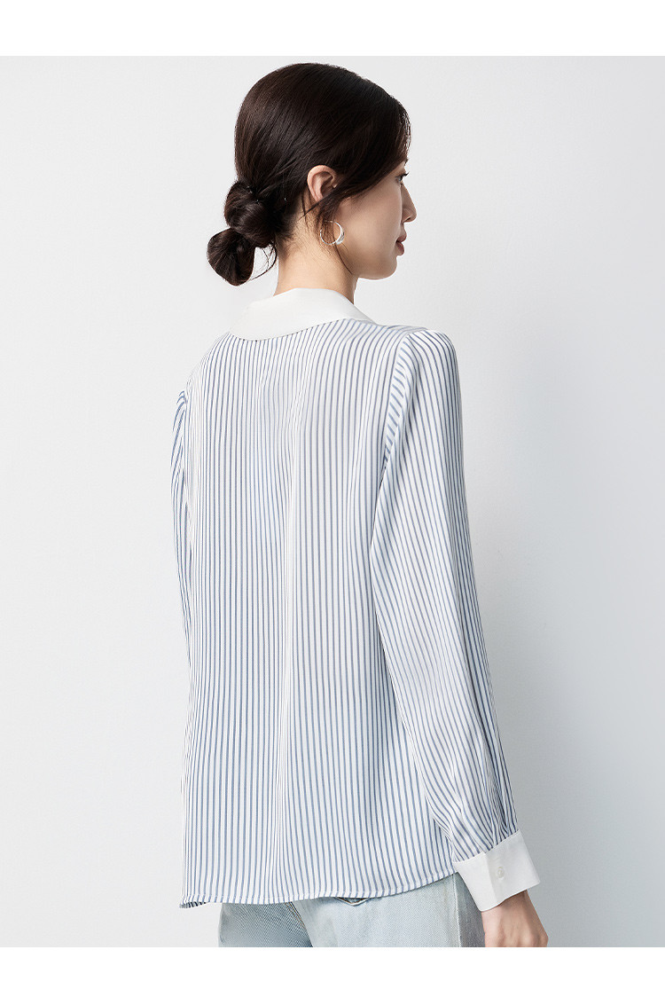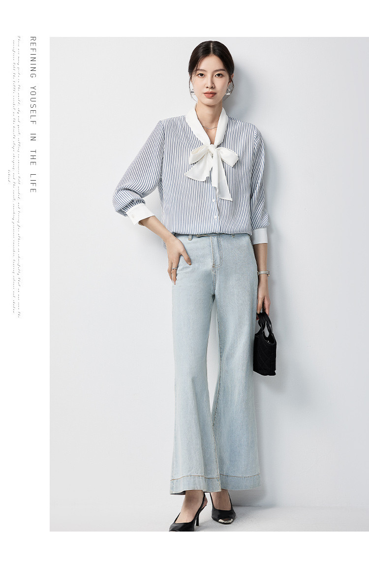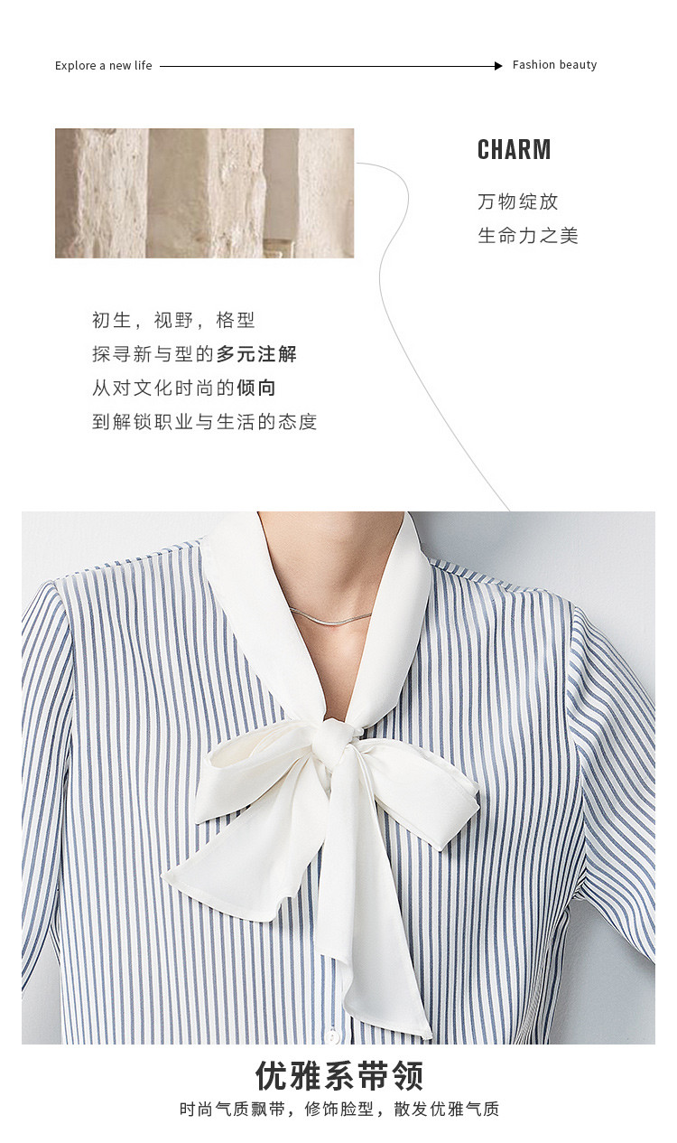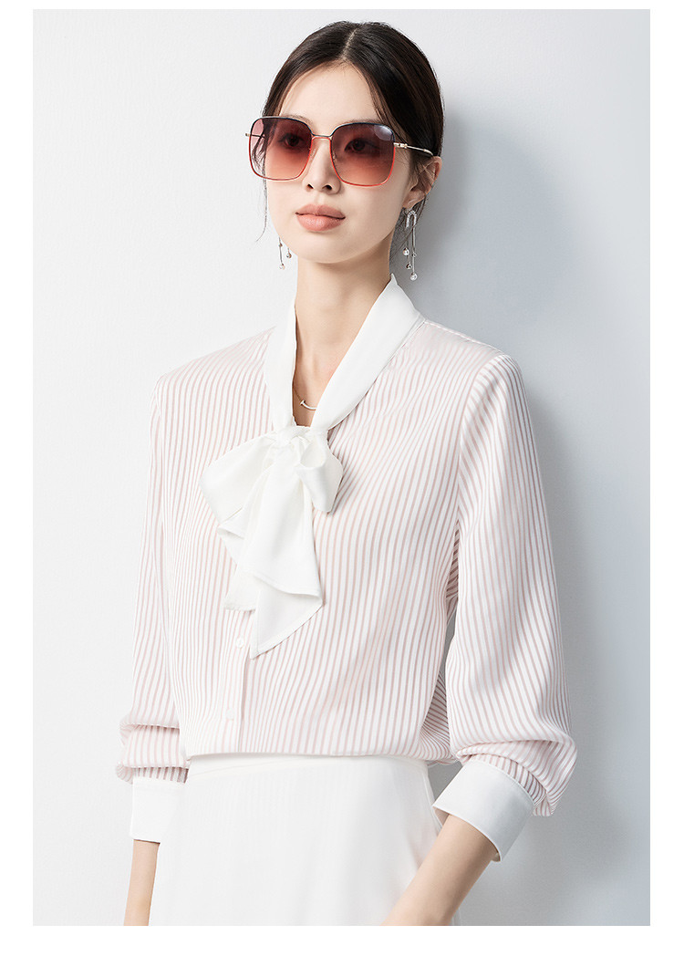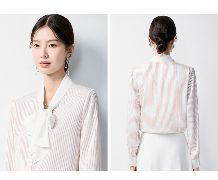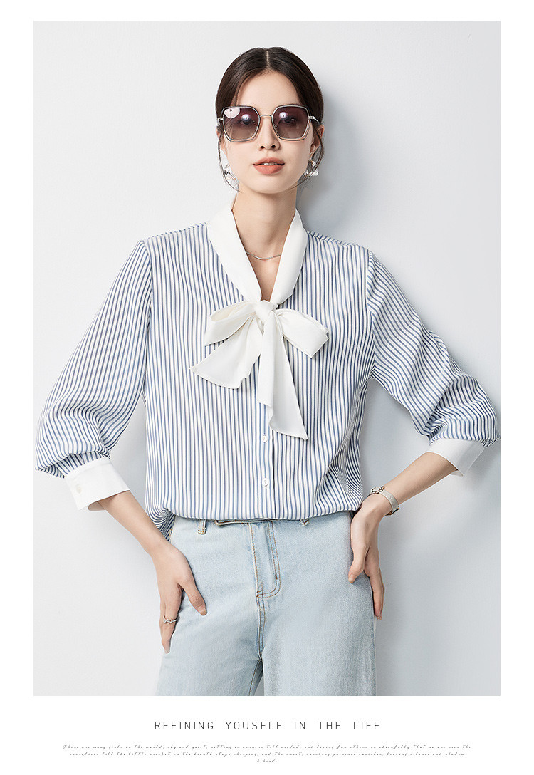 罗蒙春秋蝴蝶结条纹长袖衬衫女士知性优雅通勤百搭衬衣女