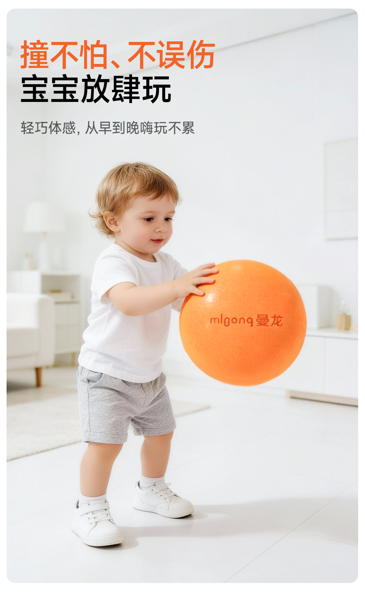 【春日趣玩FUN】曼龙mloong果冻静音球拍拍球室内无声球2岁+儿童弹力训练玩具