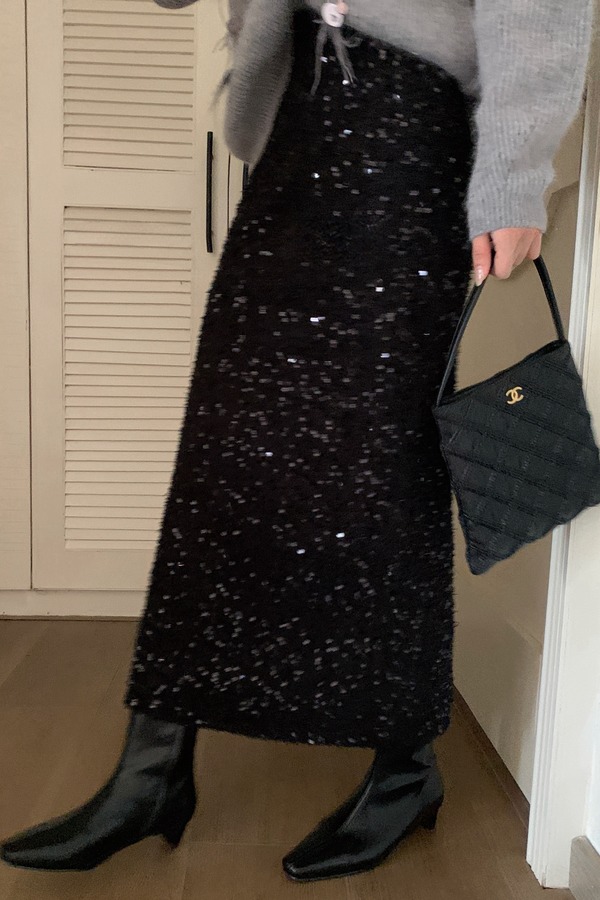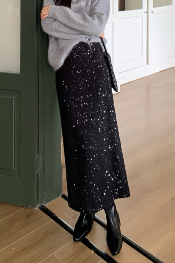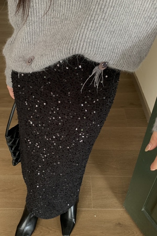ELLA JADE 黑色亮片气质优雅包臀显瘦半裙 21641