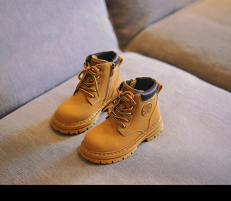 「便携式拉链款」小虎星儿童小黄靴 女童厚底马丁靴秋季男童软底短靴童装