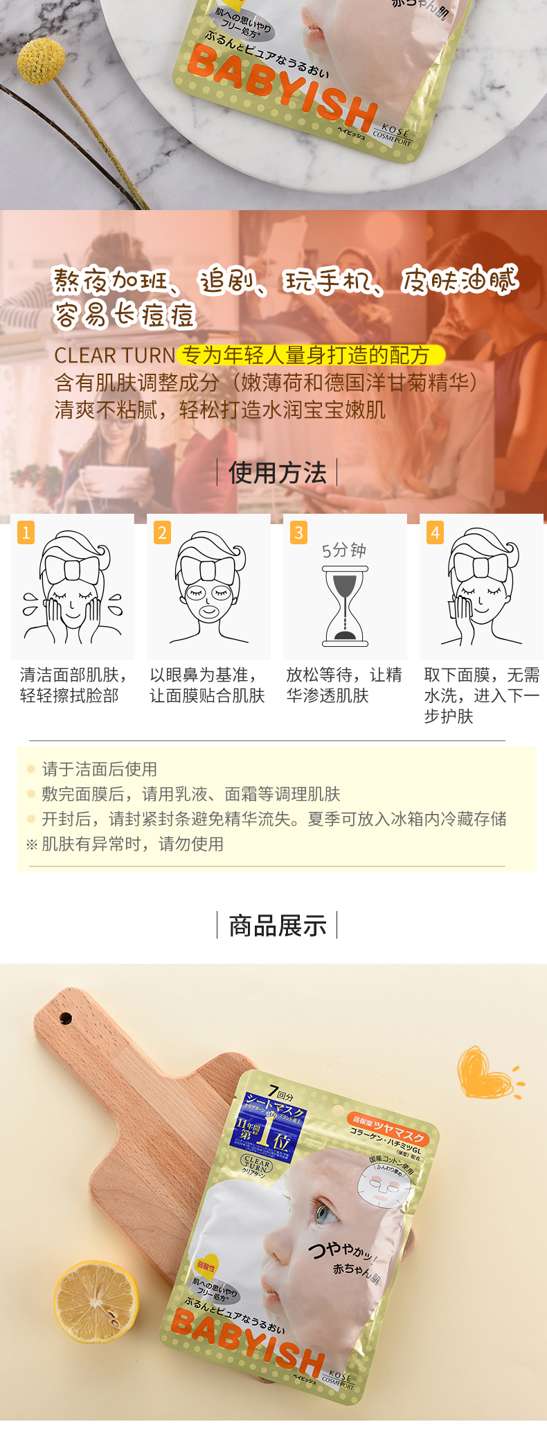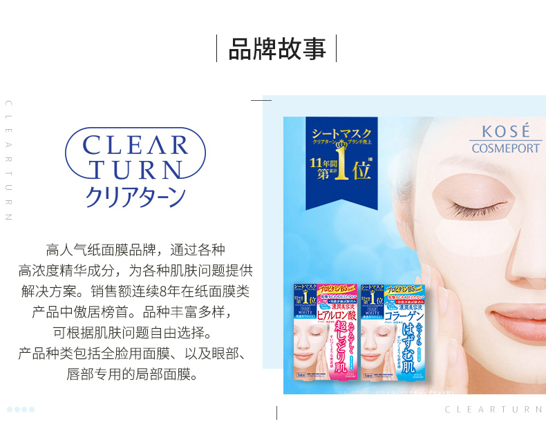 【商品名称】高丝 CLEAR TURN 保湿光泽面膜 7片装*3袋