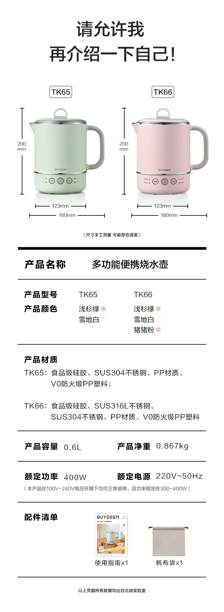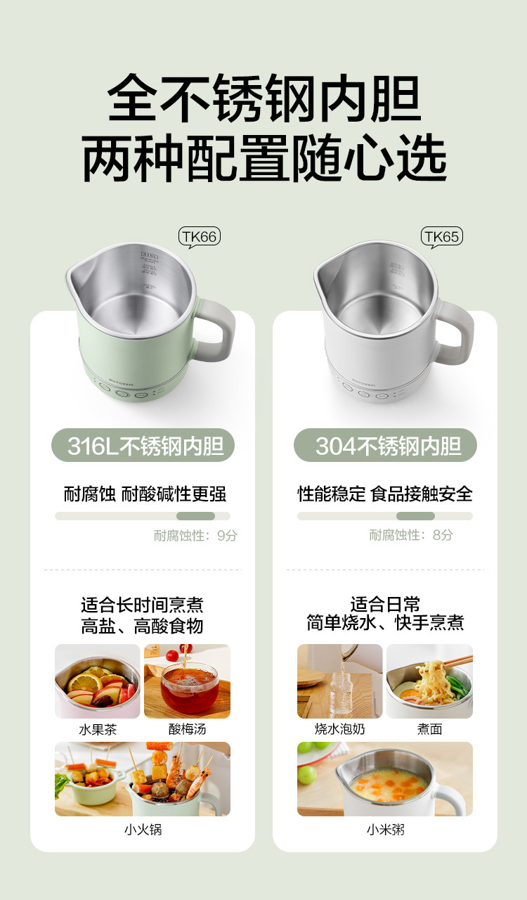 【北鼎便携烧水杯】差旅小型316不锈钢恒温烧水壶保温一体TK66&TK65