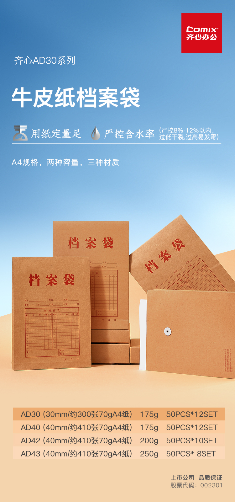 齐心 AD42 混浆200g档案袋 A4 40mm 50个/套