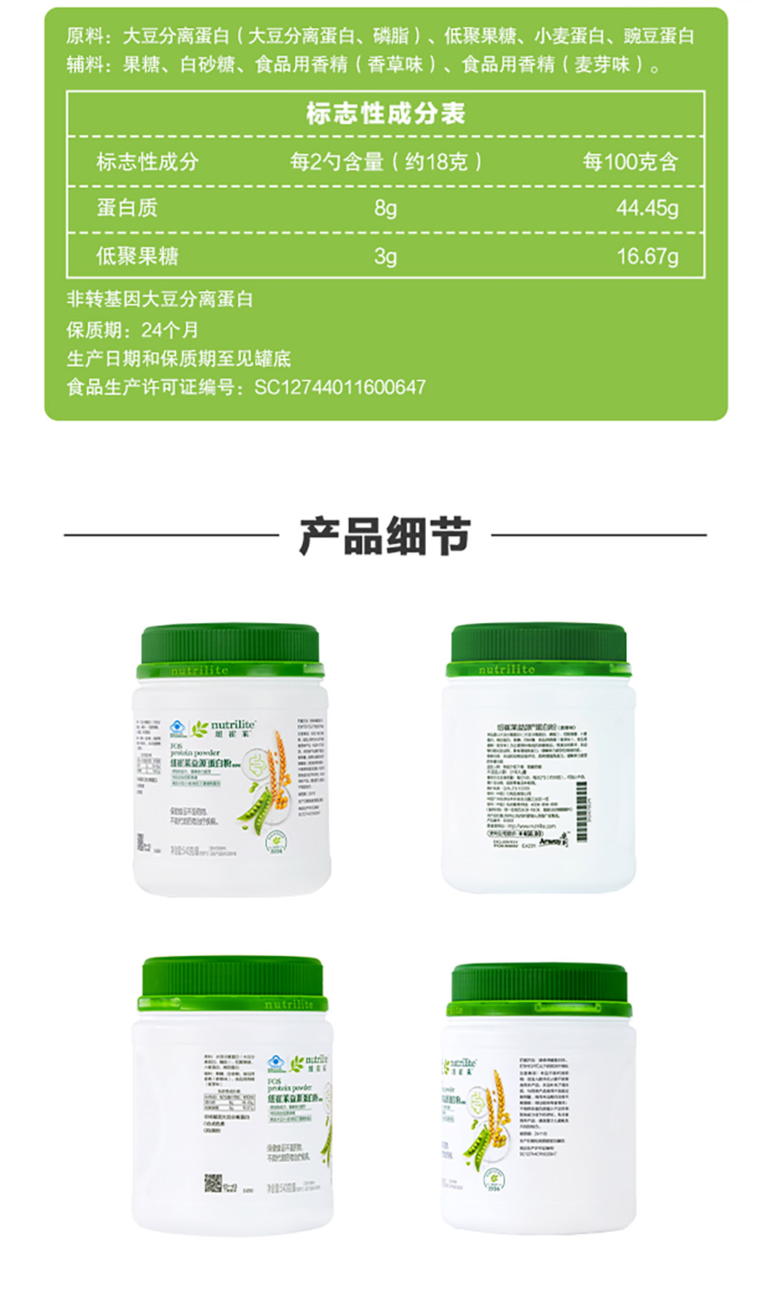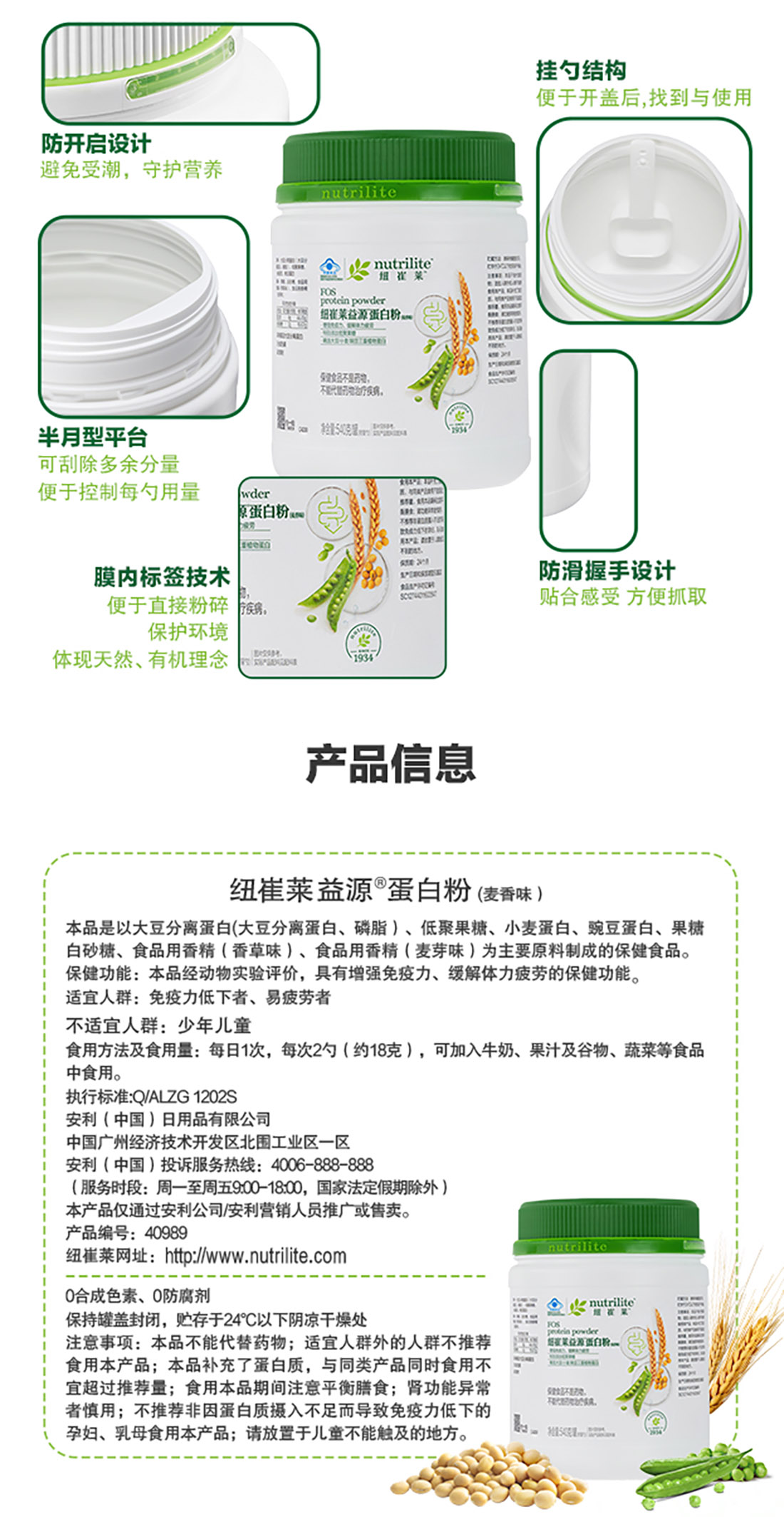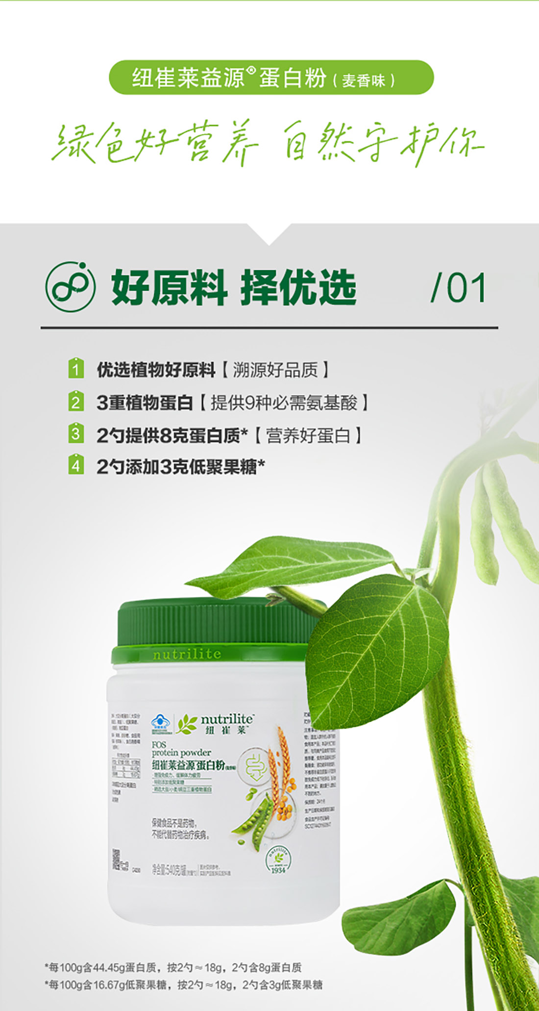安利纽崔莱益源O蛋白粉麦香味540克 优质蛋白一口麦香味