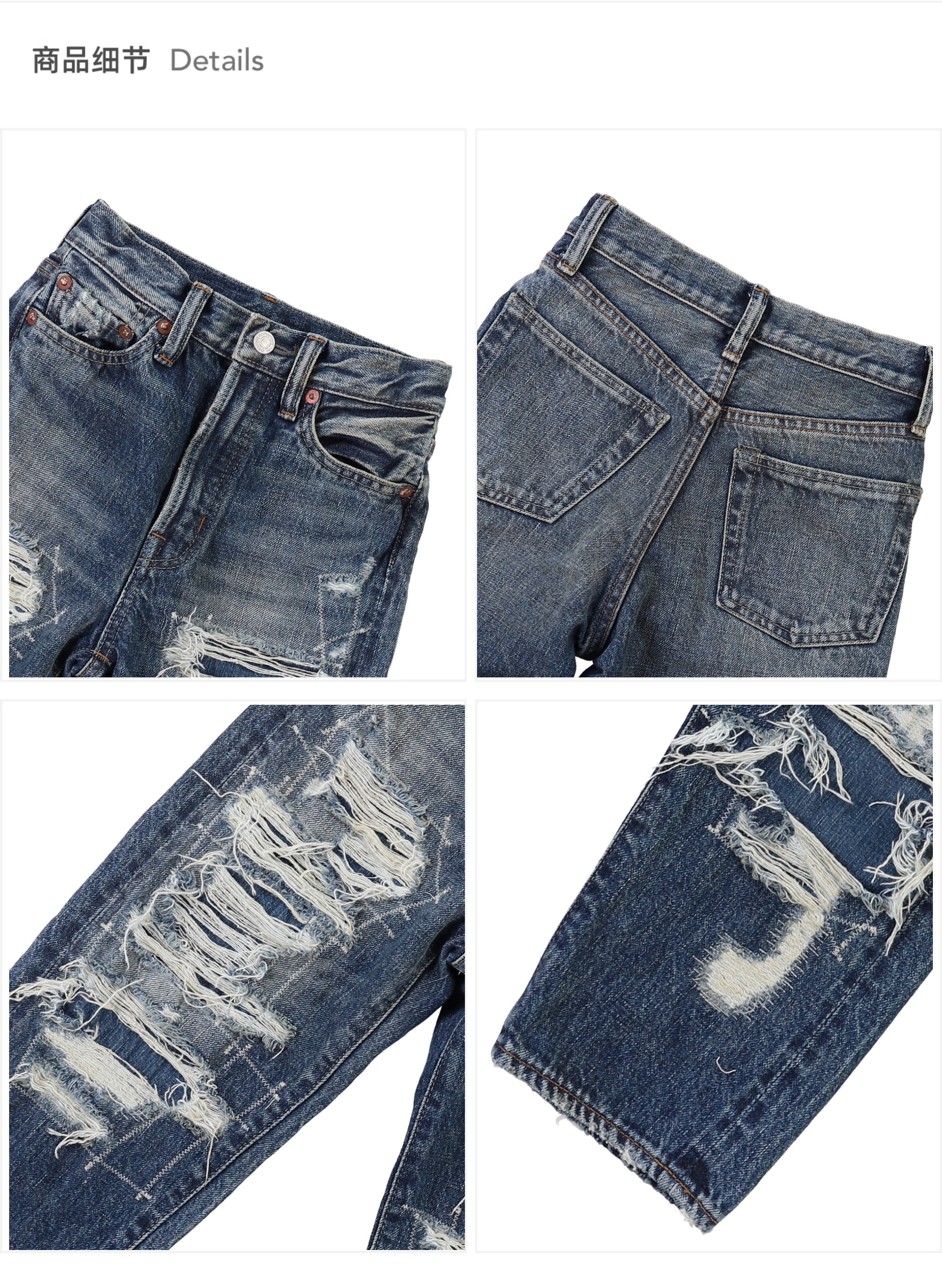 日本DD童装 DENIM DUNGAREE 12盎司复古破坏丹宁 GRUNGY 牛仔长裤
