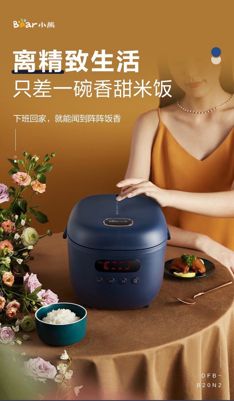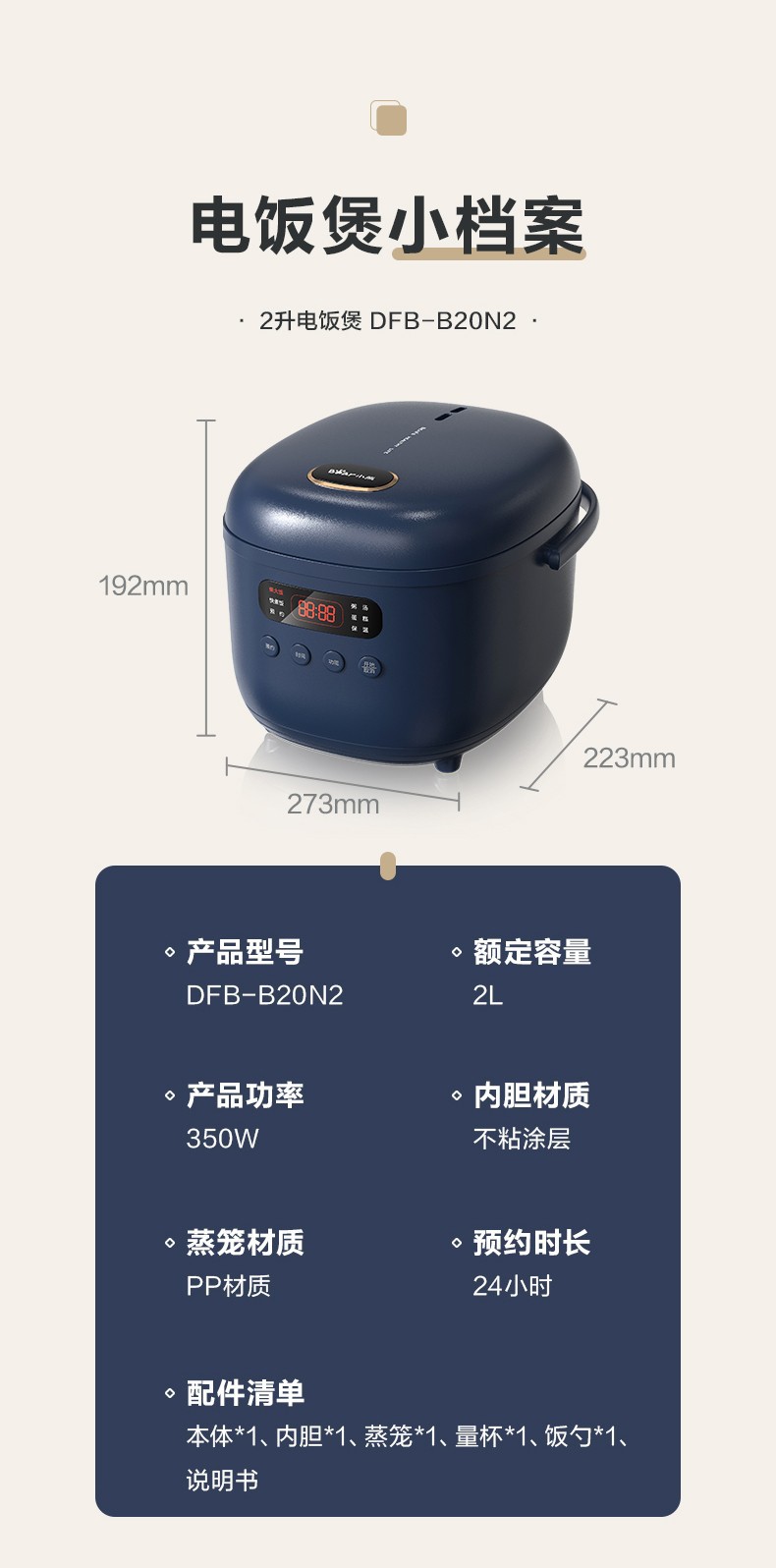 小熊(Bear)DFB-B20N2 电饭煲2L 智能家用多功能迷你小型电饭锅全自动柴火饭预约煲汤煮粥锅煮饭煲