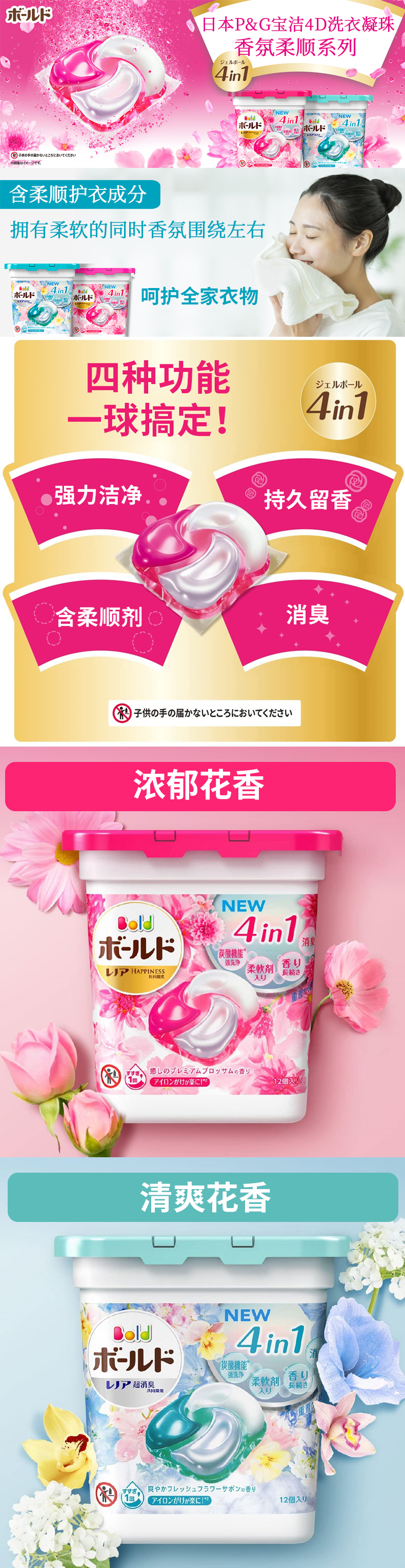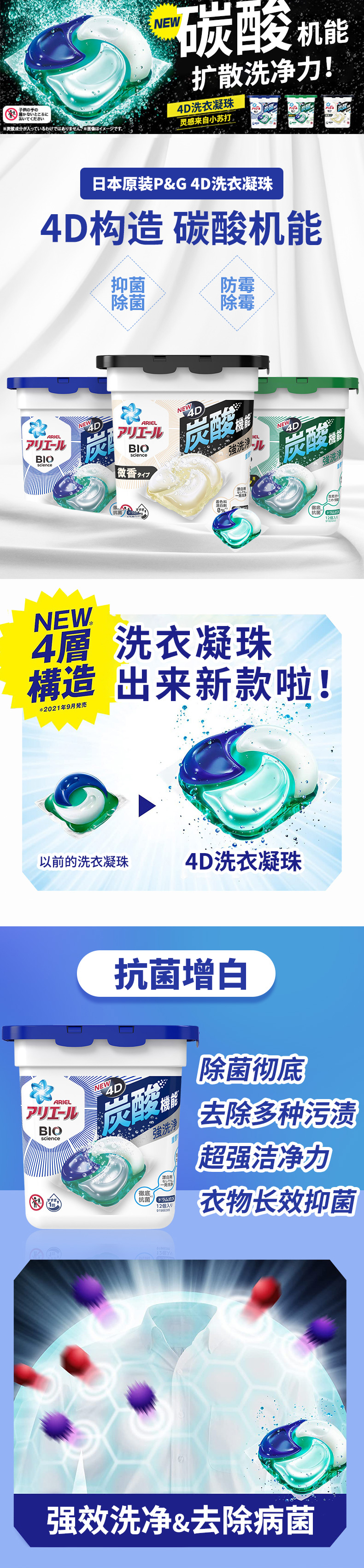 宝洁洗衣凝珠抗菌清洁洗衣球4D新款