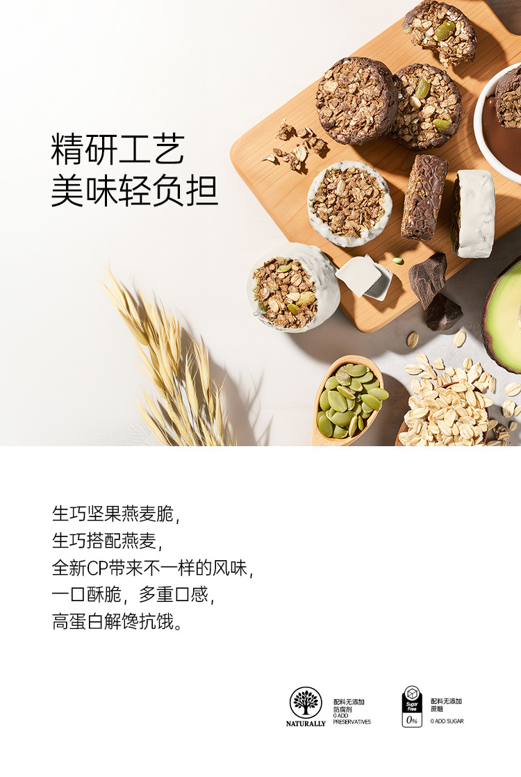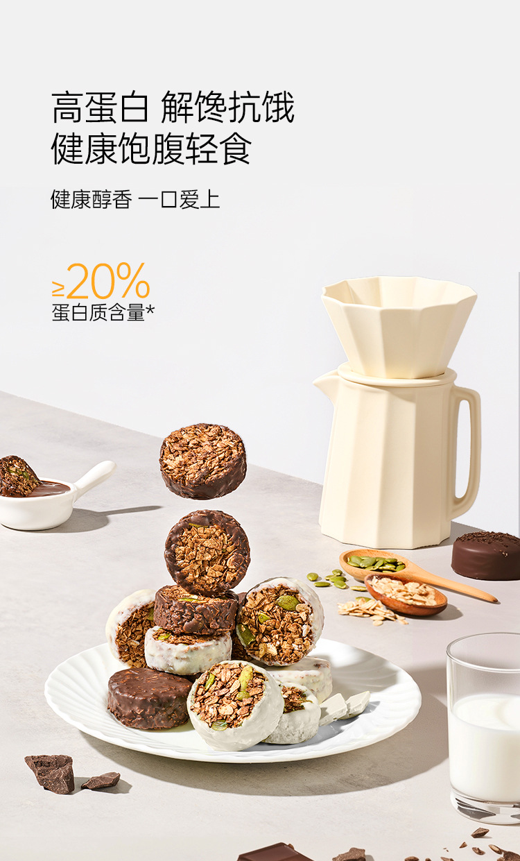 【营养食光·全麦坚果燕麦脆】 白巧燕麦脆 巧克力味饼干 高蛋白代餐 独立包装
