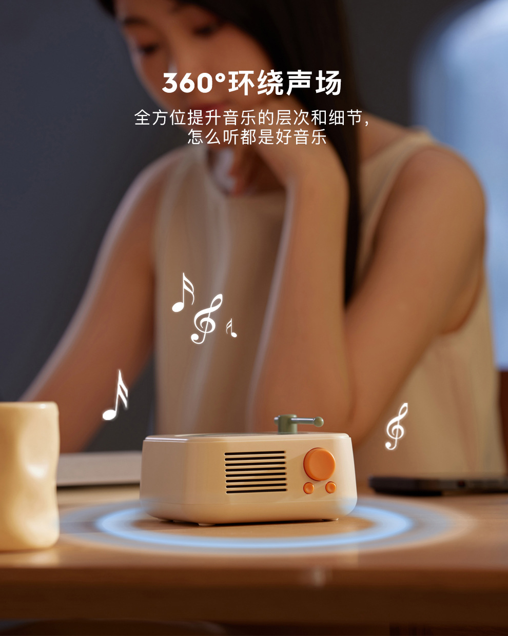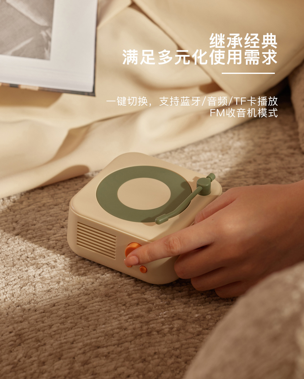 【生活的治愈艺术!满满的音乐仪式感】新款复古独奏蓝牙音箱TF卡音响户外简约迷你USB充电便携音箱,一键切换,支持蓝牙/音频/TF卡播放 FM收音机模式。