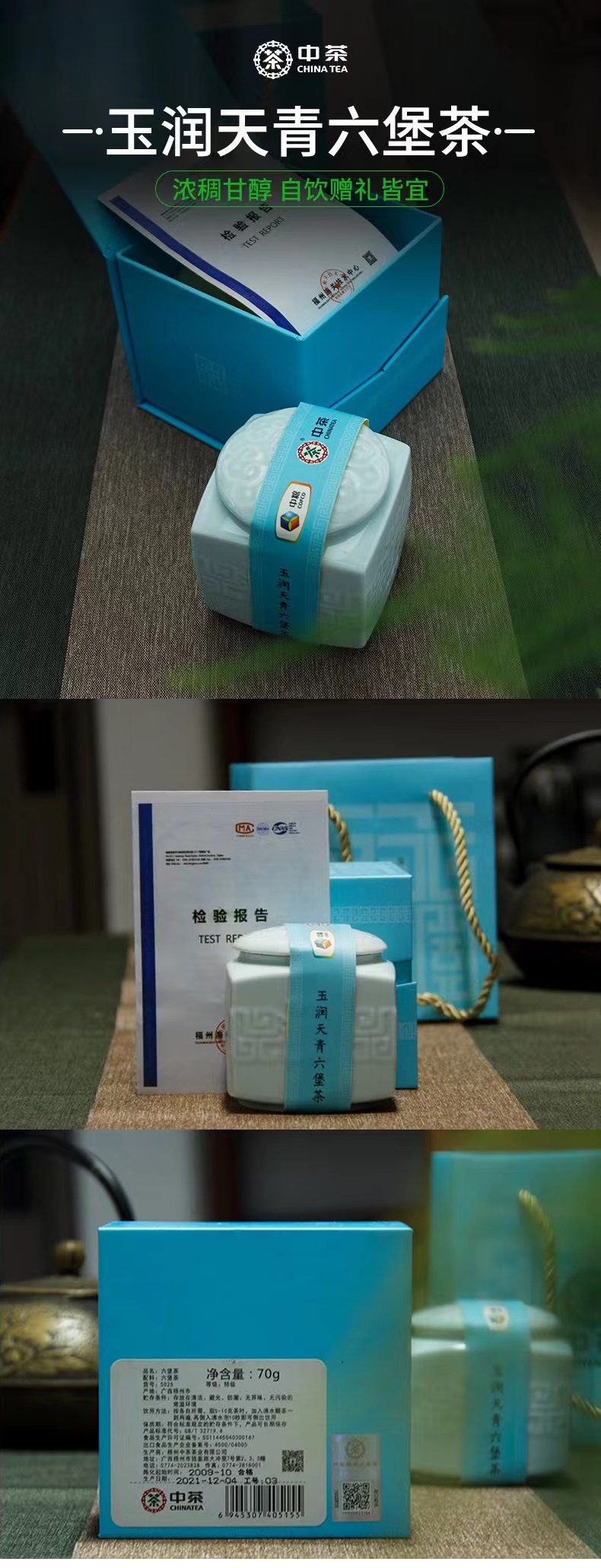 《中粮-中茶》玉润天青六堡茶广西梧州黑茶2009陈化散茶瓷罐装70g/罐