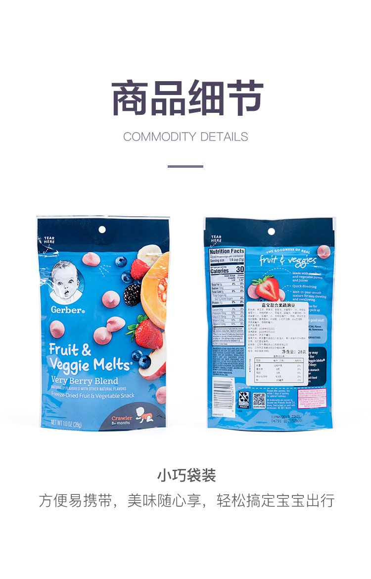 美国Gerber嘉宝 果蔬溶豆 混合莓子味 28g