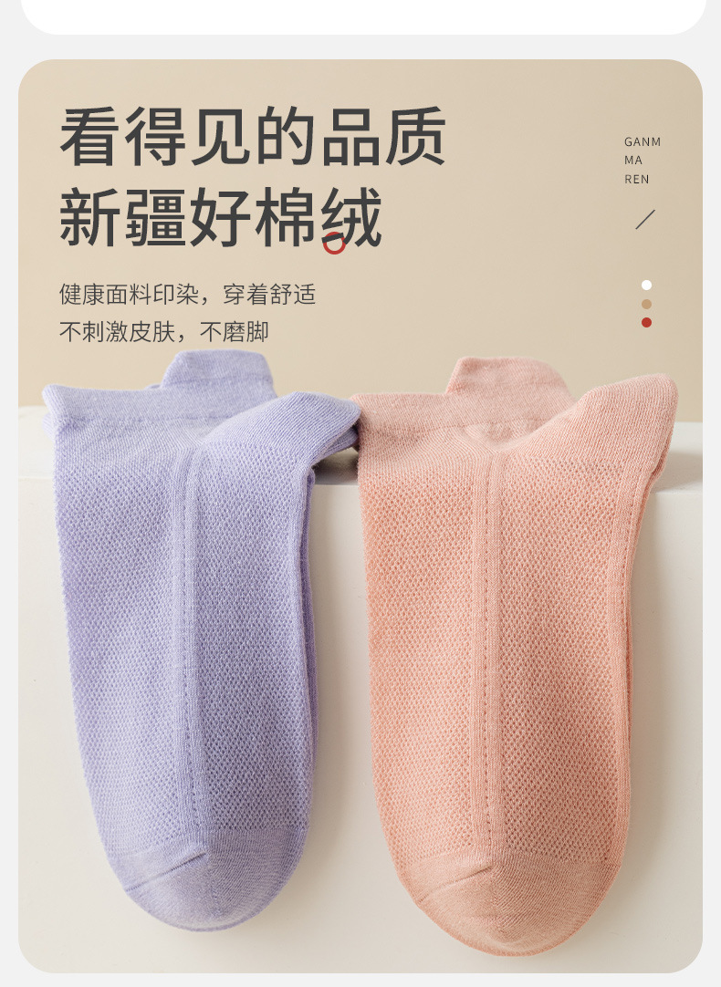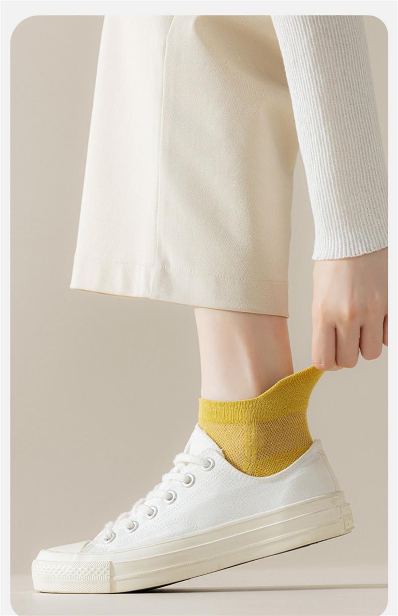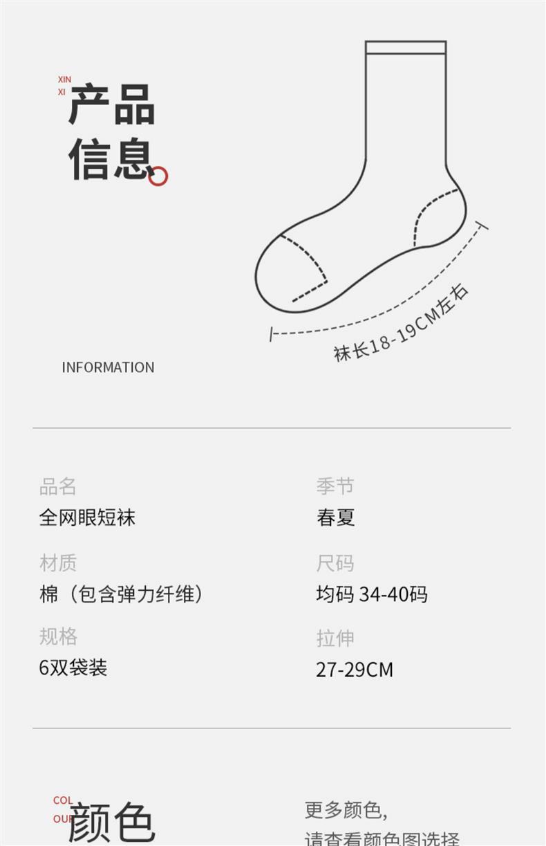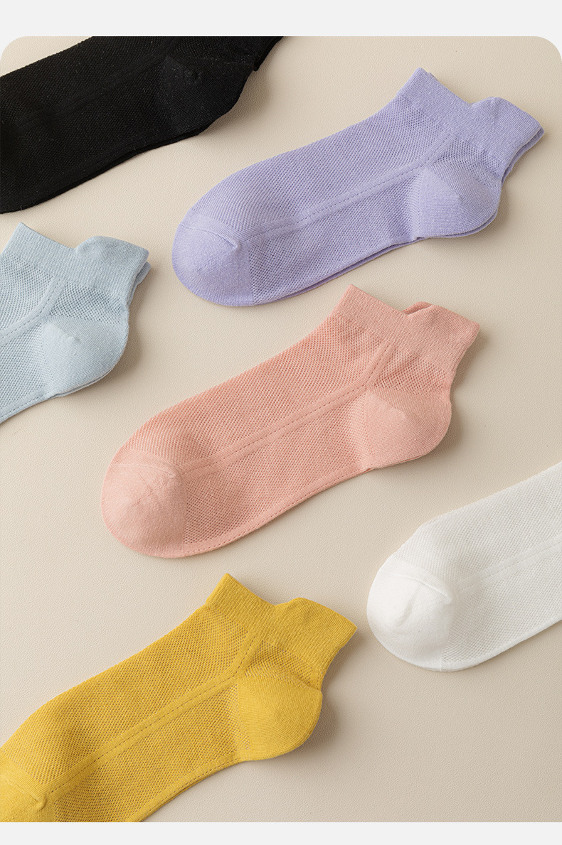 【6双装 200针纯棉女袜】纯棉针网眼袜,透气舒适,吸汗又防臭,女孩子夏天必备。短筒船袜设计,彰显女性优雅!