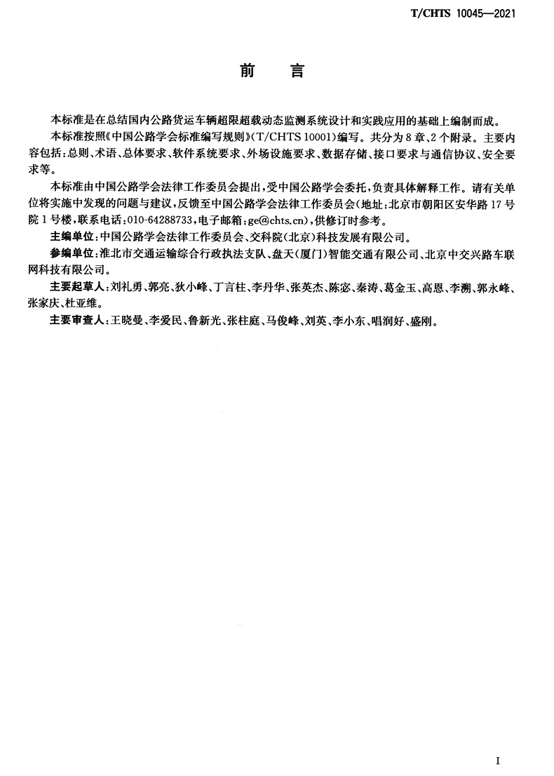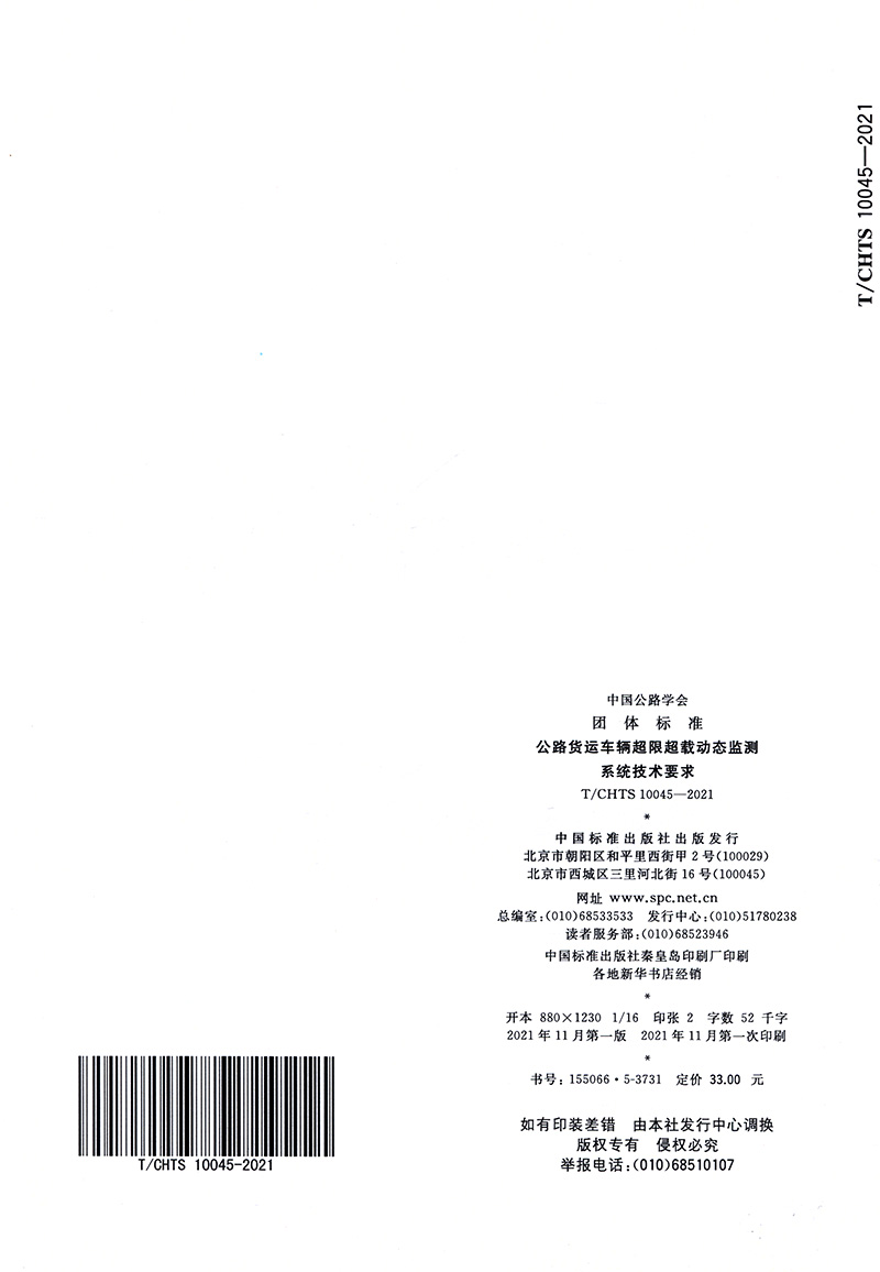 书名:T/CHTS10045-2021公路货运车辆超限超载动态监测系统技术要求