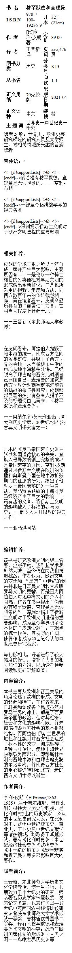 索引附录一 亨利·皮朗/F.M.鲍维科附录二 亨利·皮朗与经济史研究/F.L.冈绍夫译后记