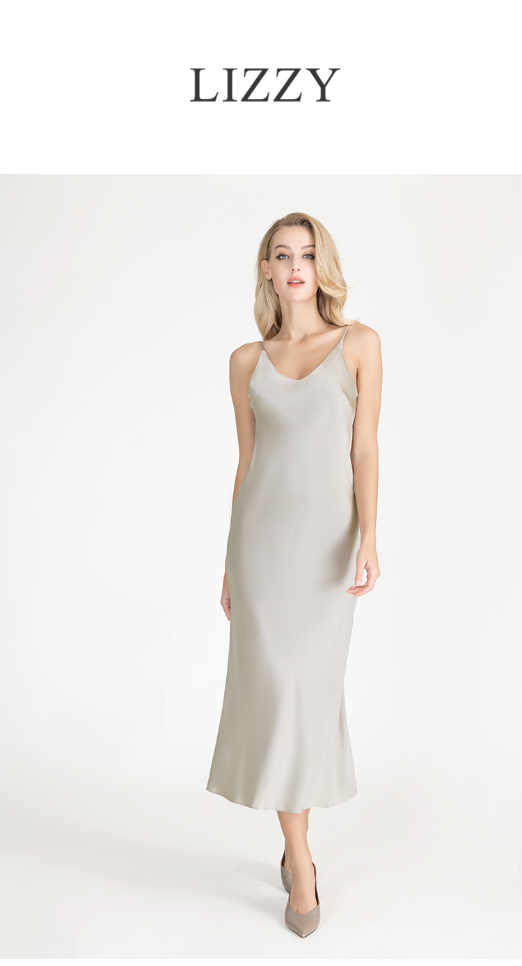 LIZZY优雅气质显瘦修身百搭吊带包臀开叉吊带连衣裙8086