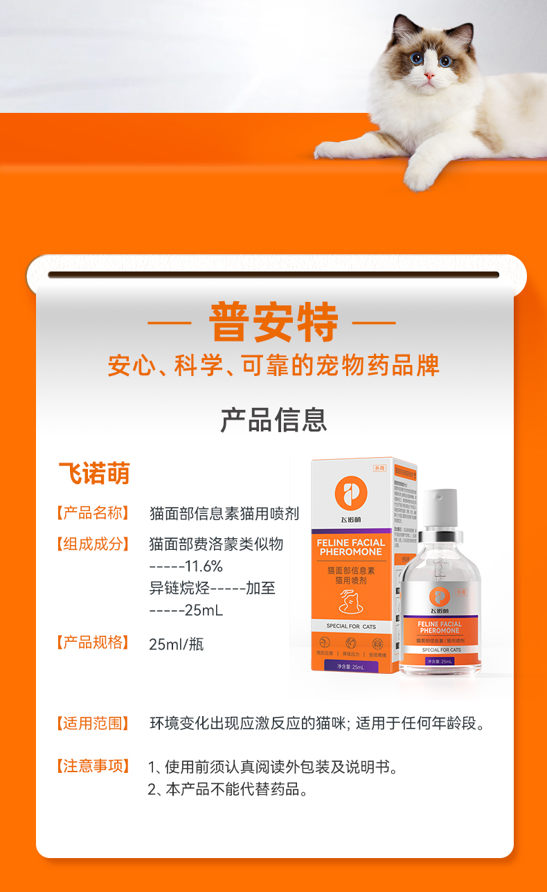 【宠币商城】普安特费洛蒙猫咪防应激情绪舒缓剂安抚情绪猫咪外出猫面部信息素飞诺萌喷雾