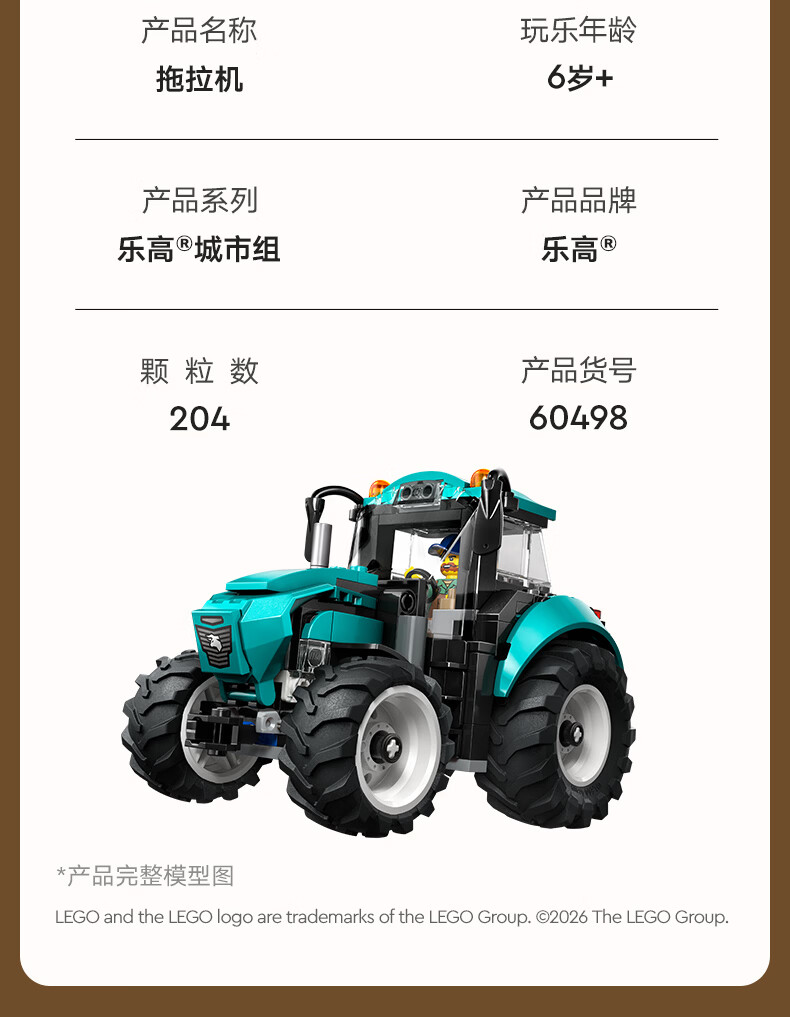 乐高积木 L60498 城市系列拖拉机