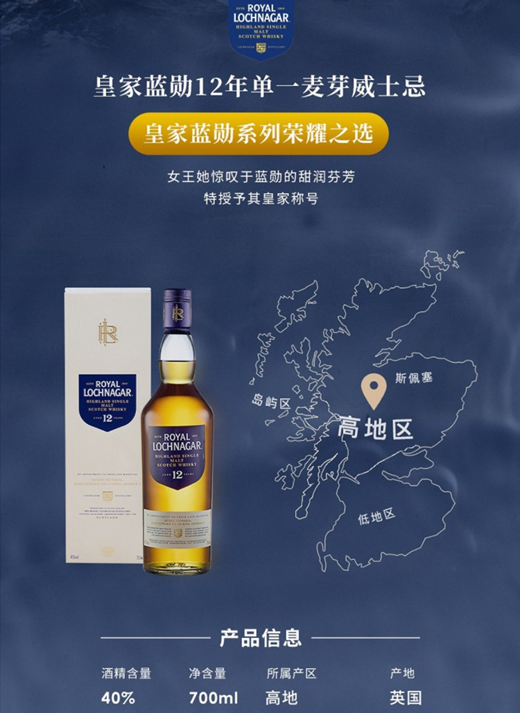 皇家蓝勋12年苏格兰单一麦芽威士忌 700ml