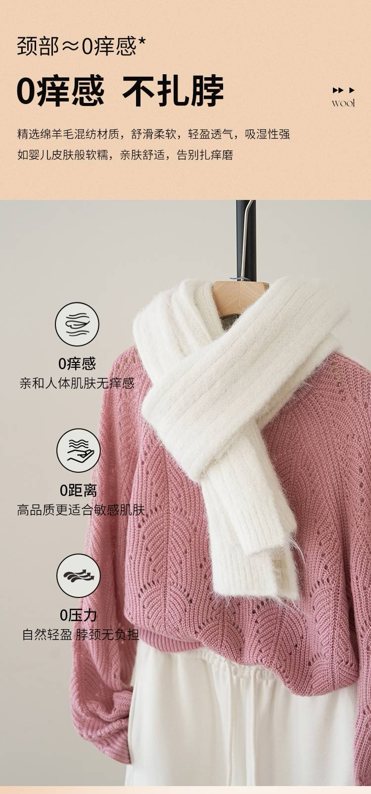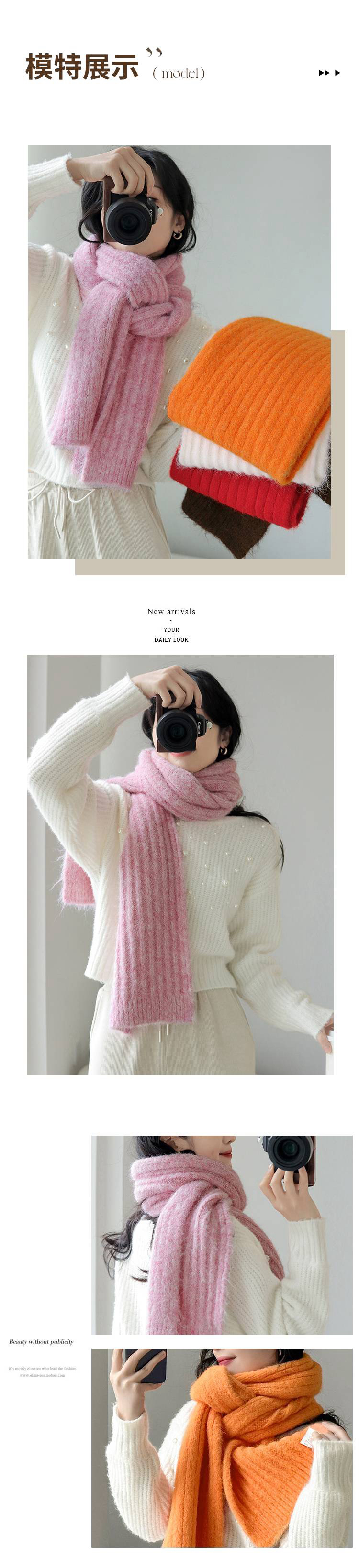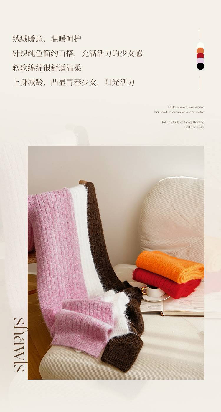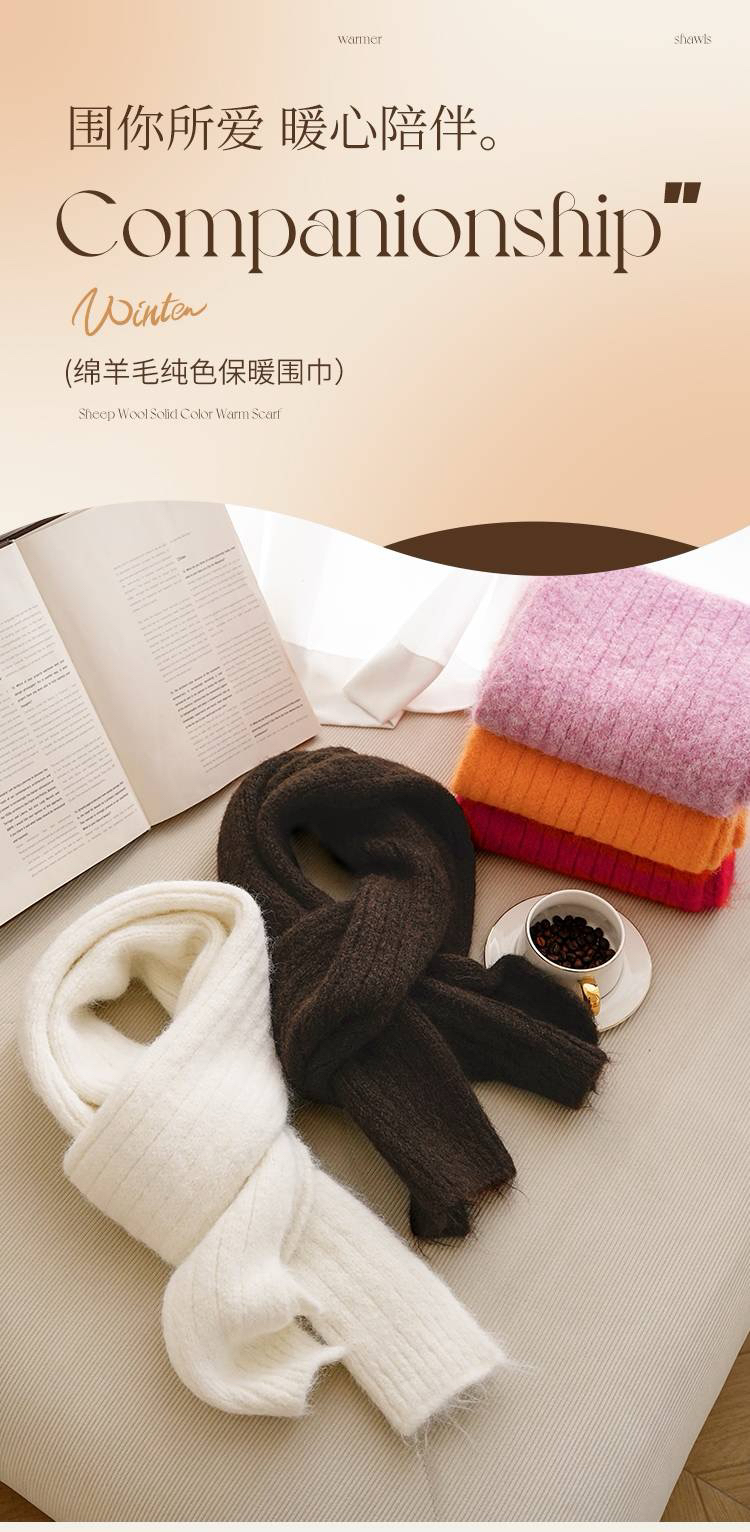女士加厚保暖针织围巾(含绵羊毛)