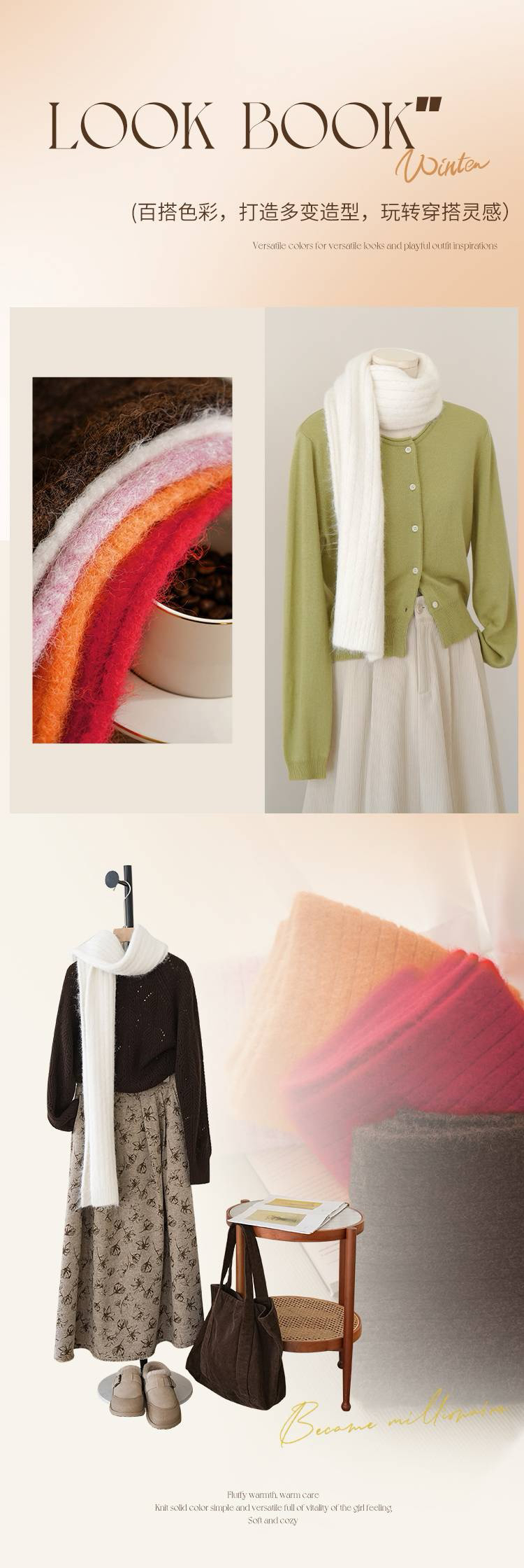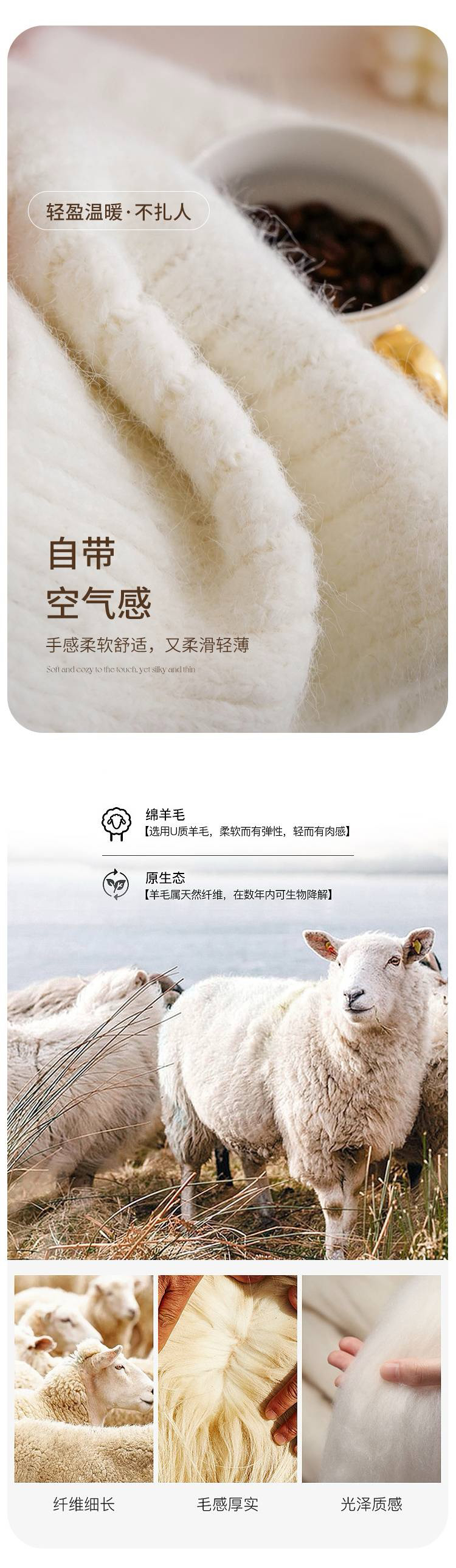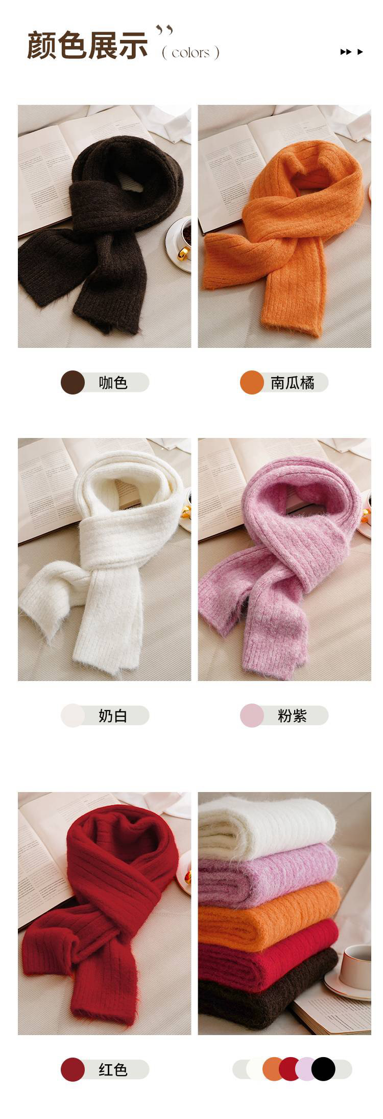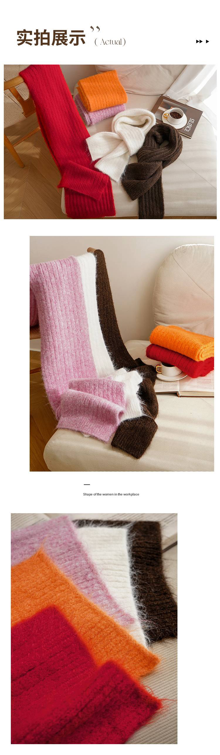 女士加厚保暖针织围巾(含绵羊毛)