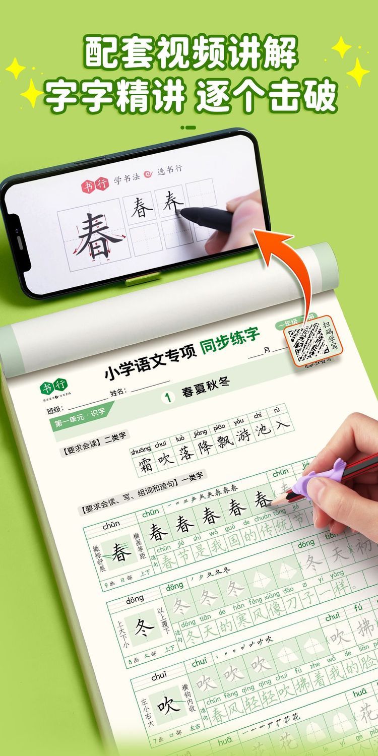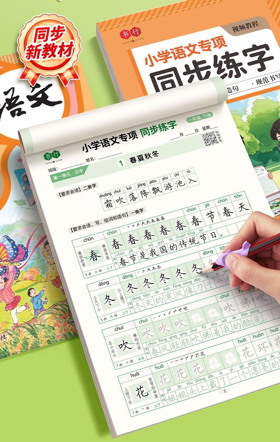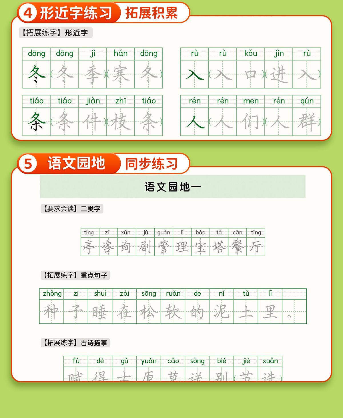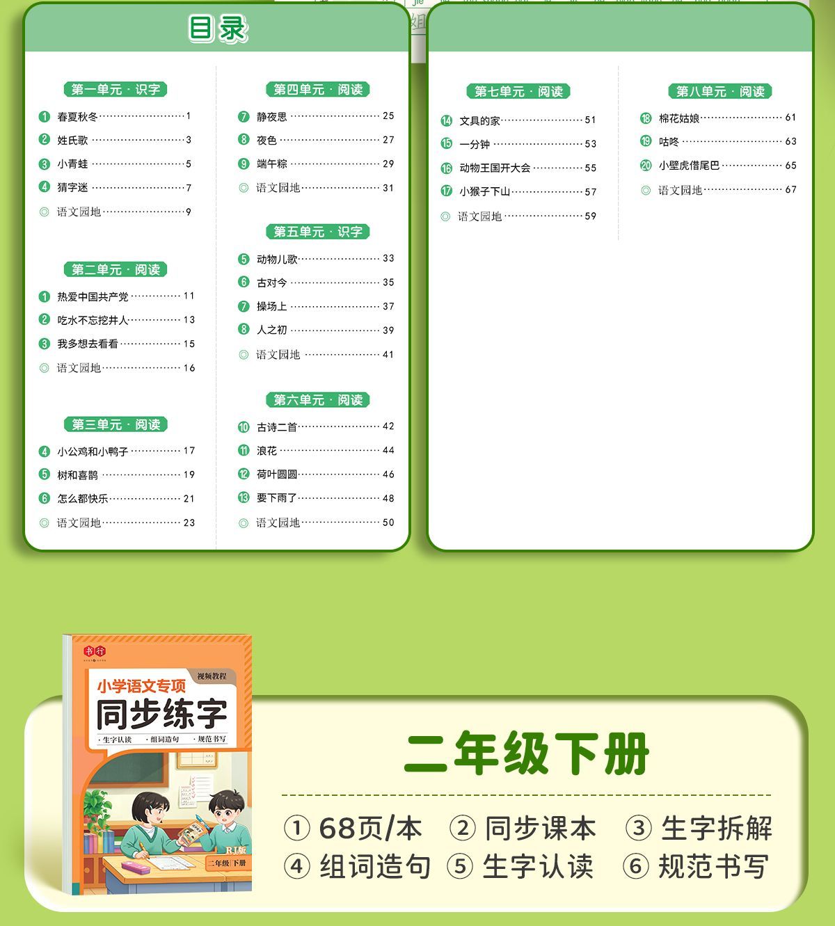 同步新教材【小学语文专项】下册同步练字视频教程(会读二类字会写一类字)组词造句笔顺笔画规范书写练字帖