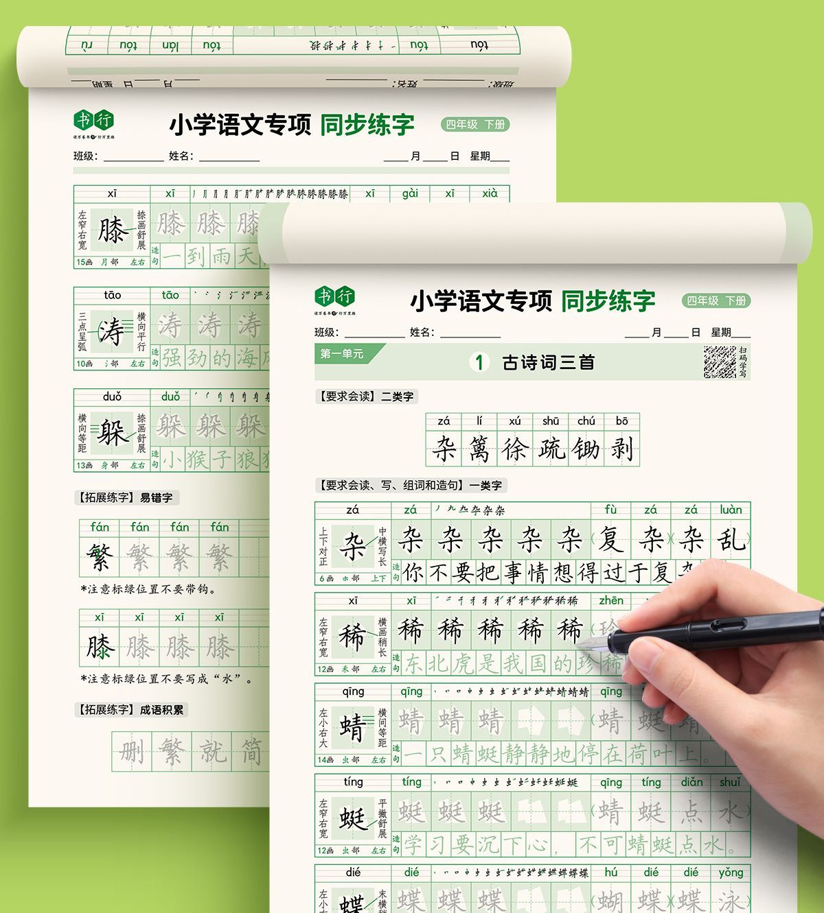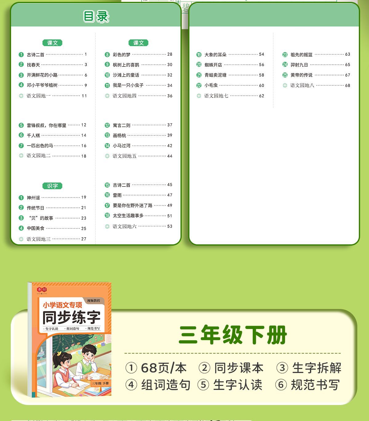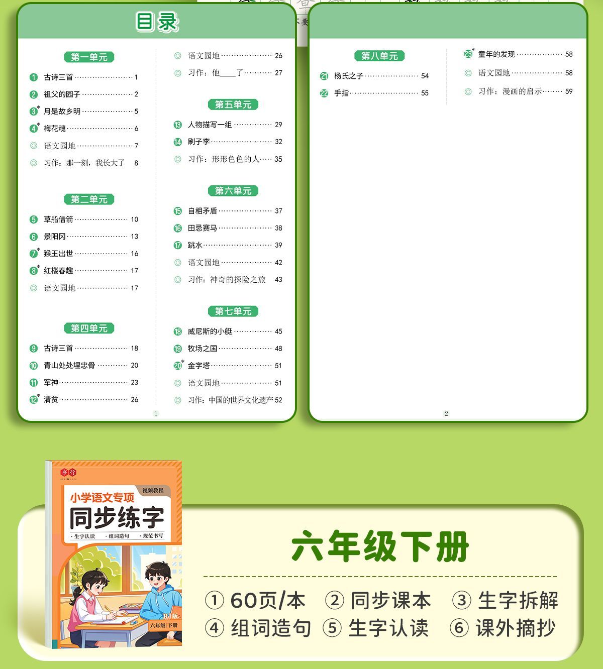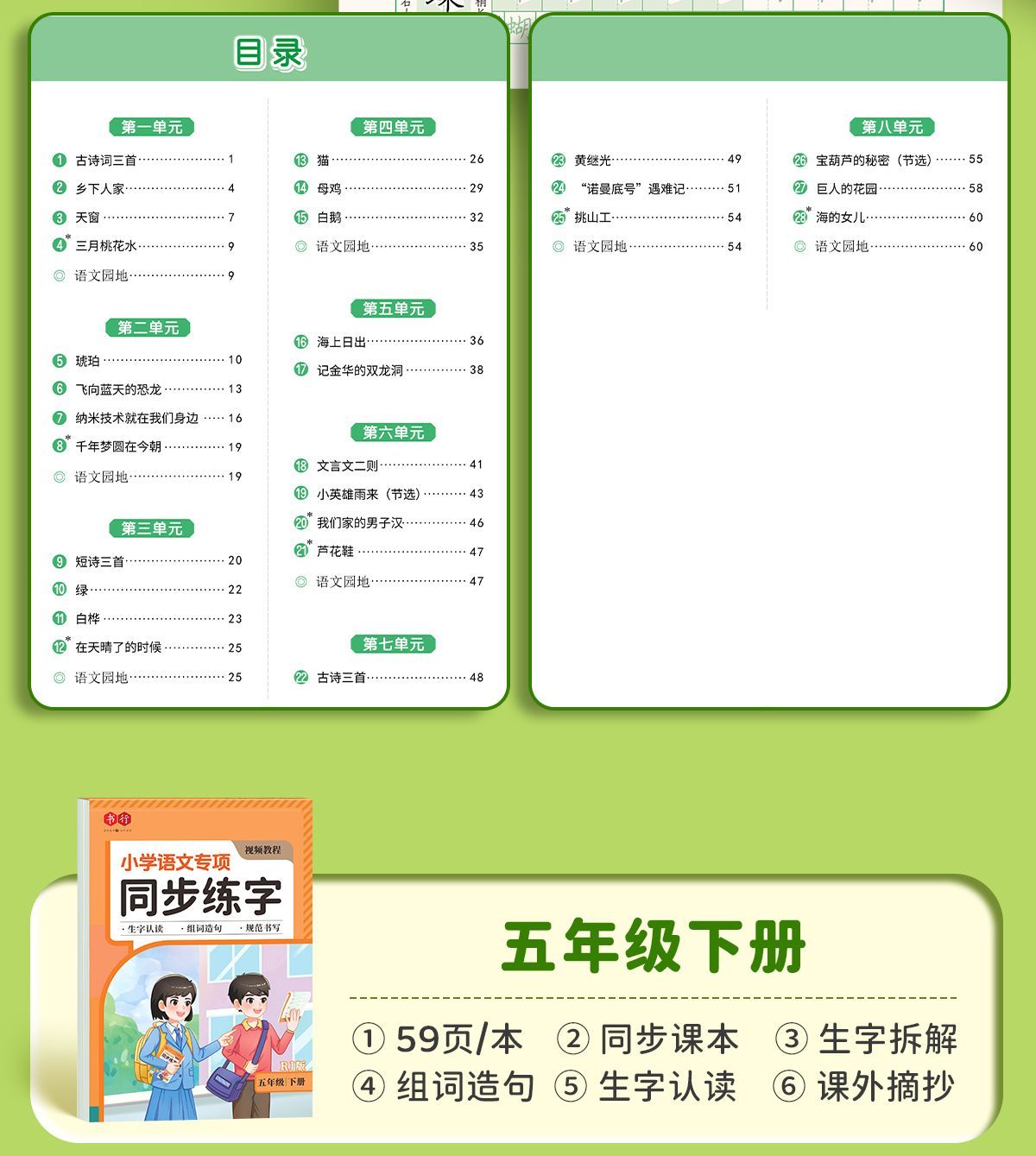 同步新教材【小学语文专项】下册同步练字视频教程(会读二类字会写一类字)组词造句笔顺笔画规范书写练字帖