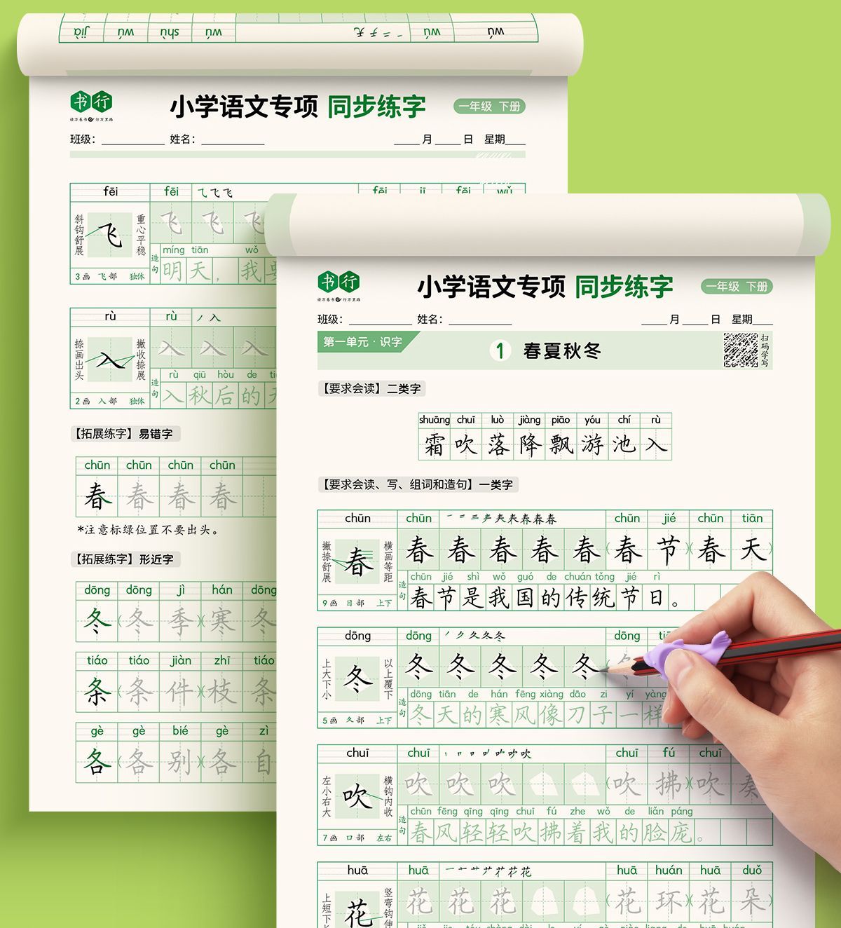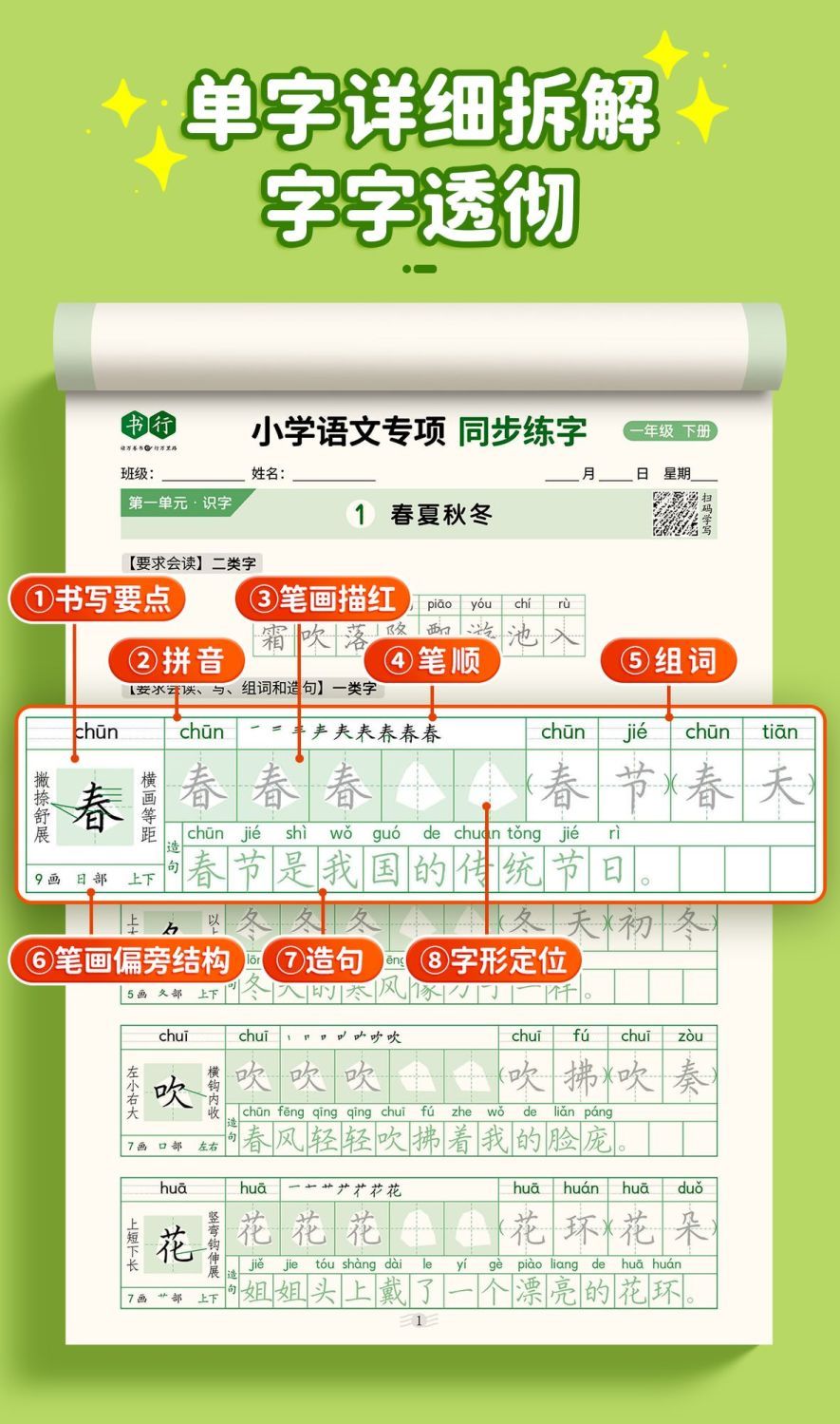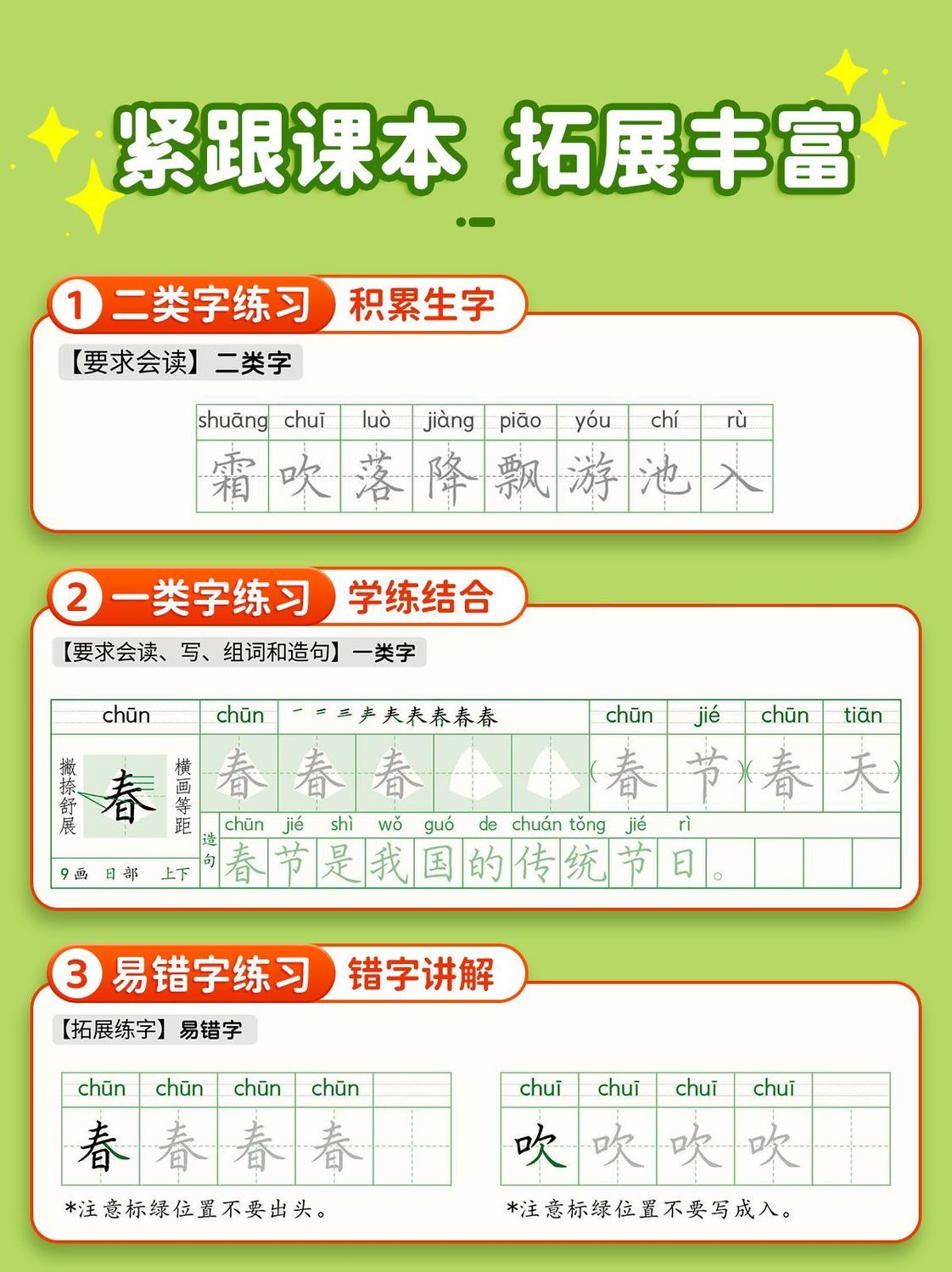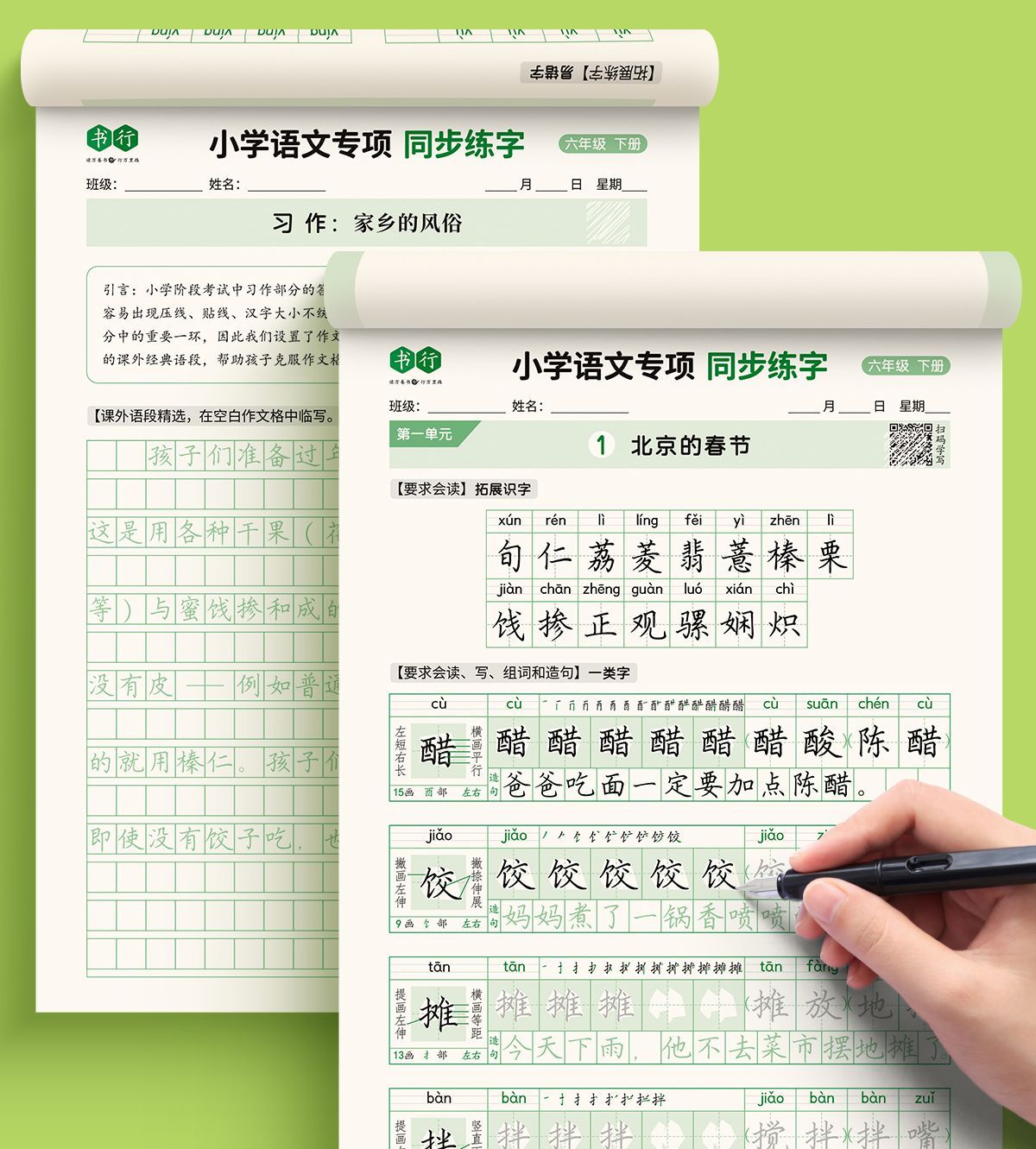 同步新教材【小学语文专项】下册同步练字视频教程(会读二类字会写一类字)组词造句笔顺笔画规范书写练字帖