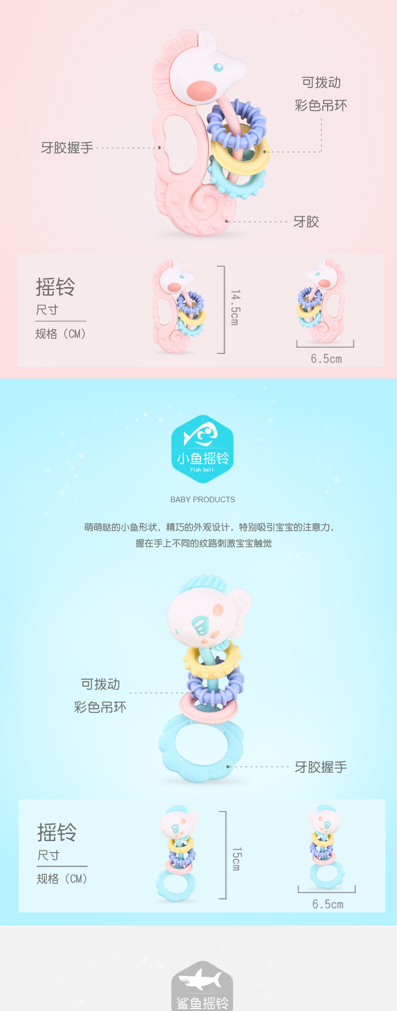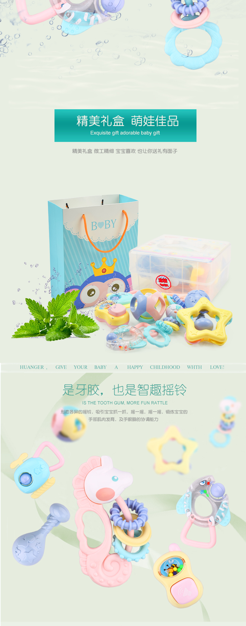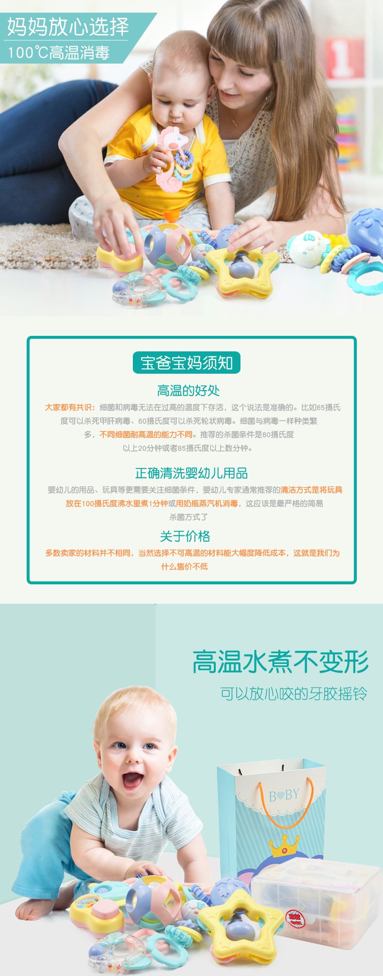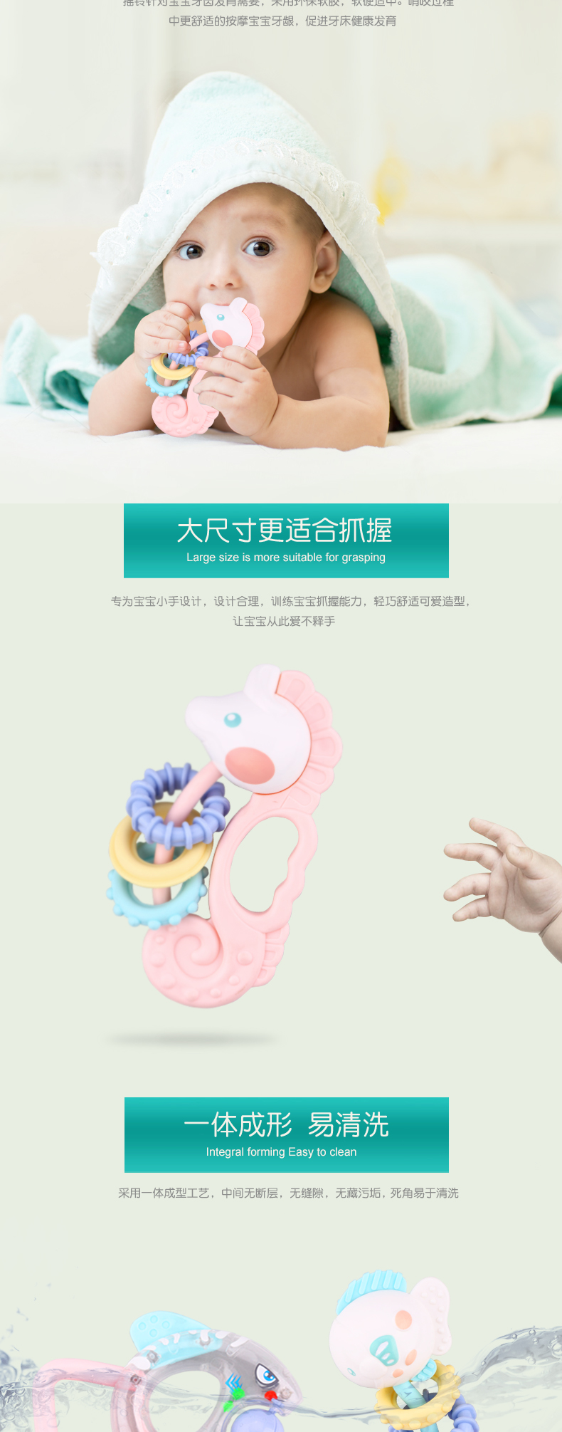 皇儿婴儿手摇铃咬牙胶玩具宝宝硅胶磨牙棒可啃咬水煮抓握训练