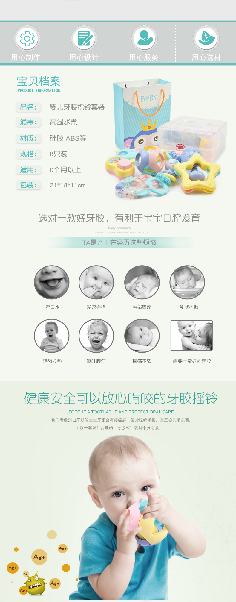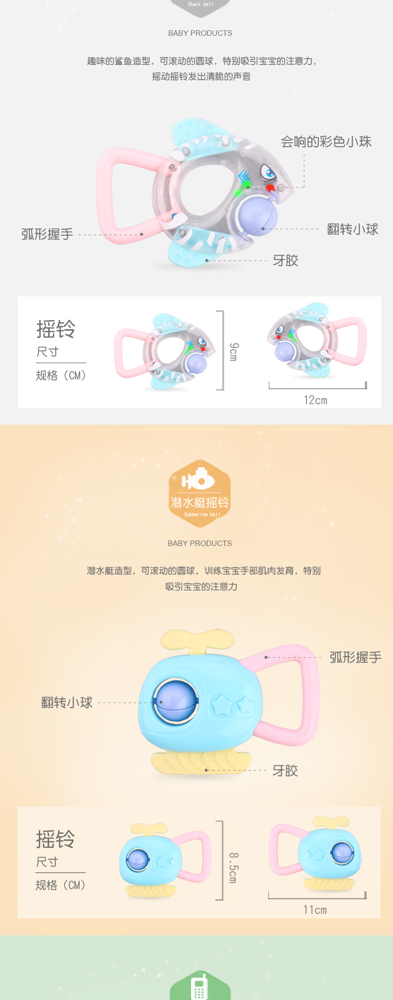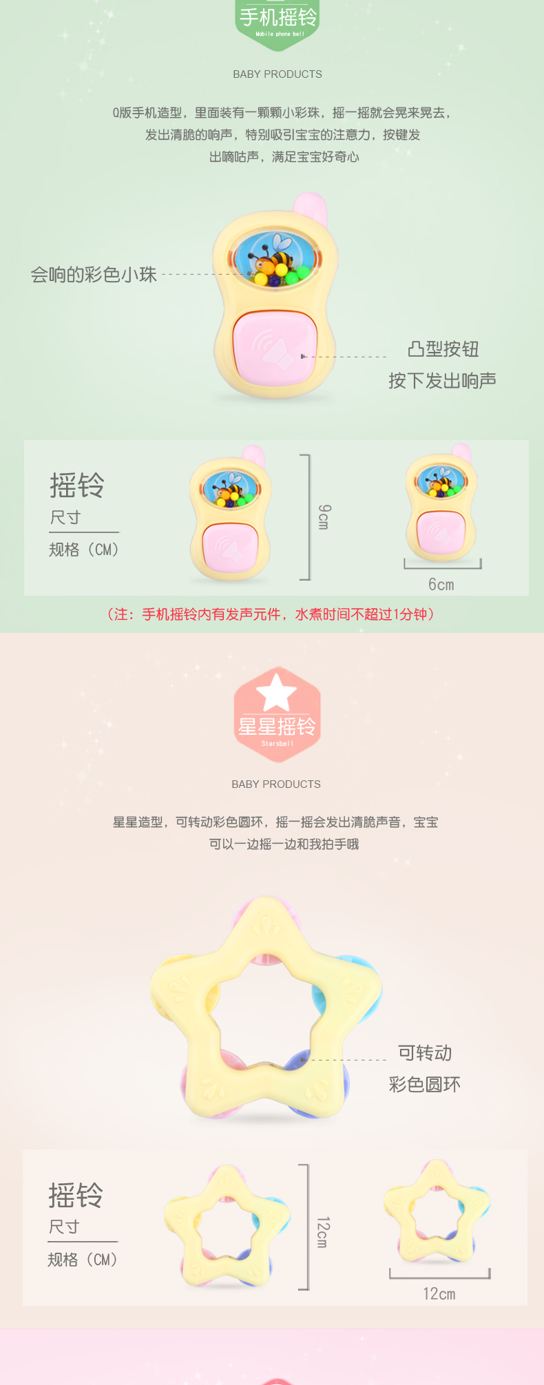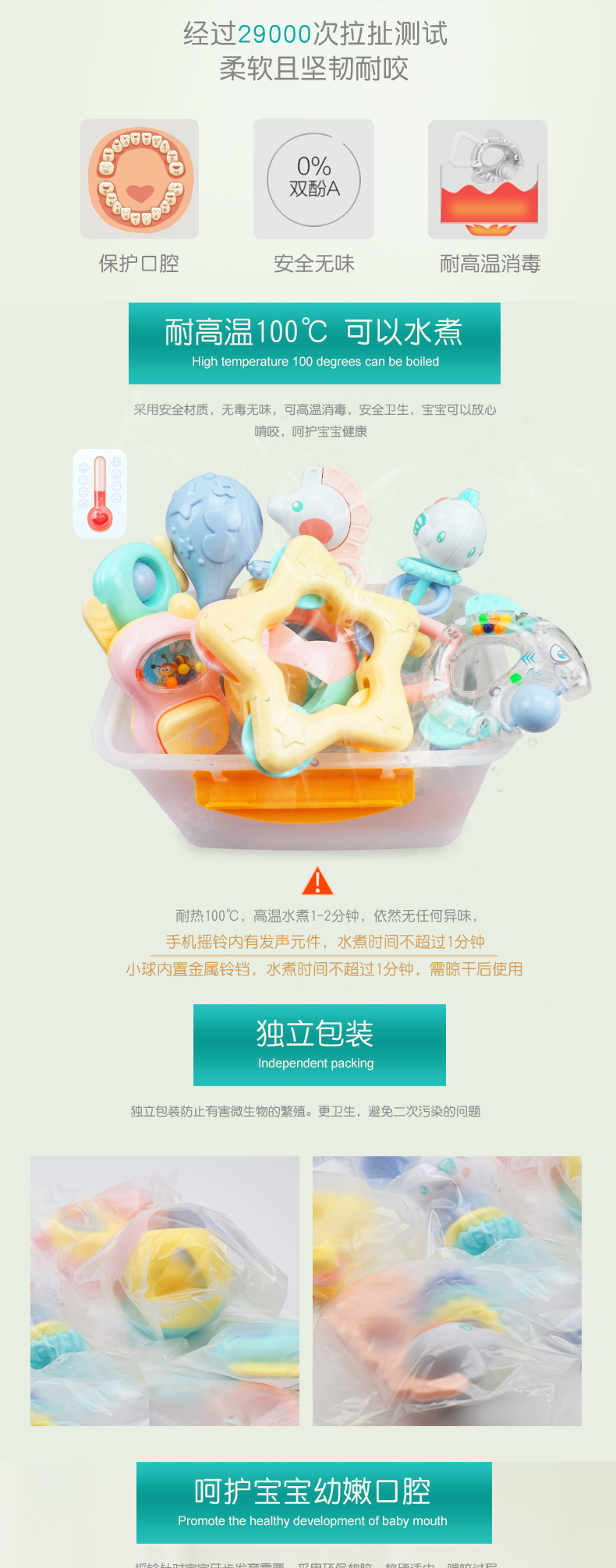 皇儿婴儿手摇铃咬牙胶玩具宝宝硅胶磨牙棒可啃咬水煮抓握训练