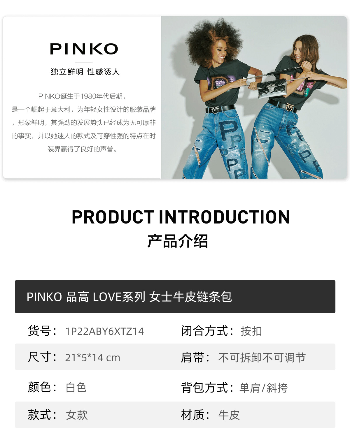 PINKO 女士白色皮革单肩包 1P22AB-Y6XTZ14