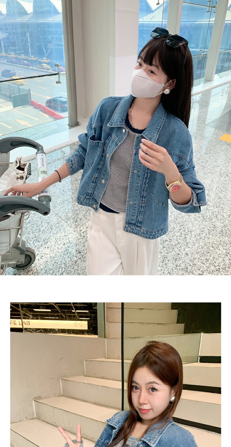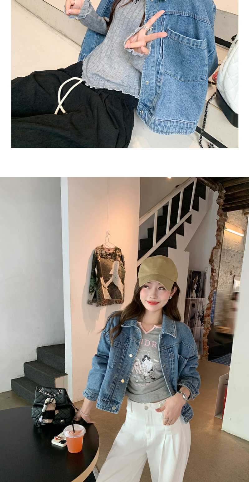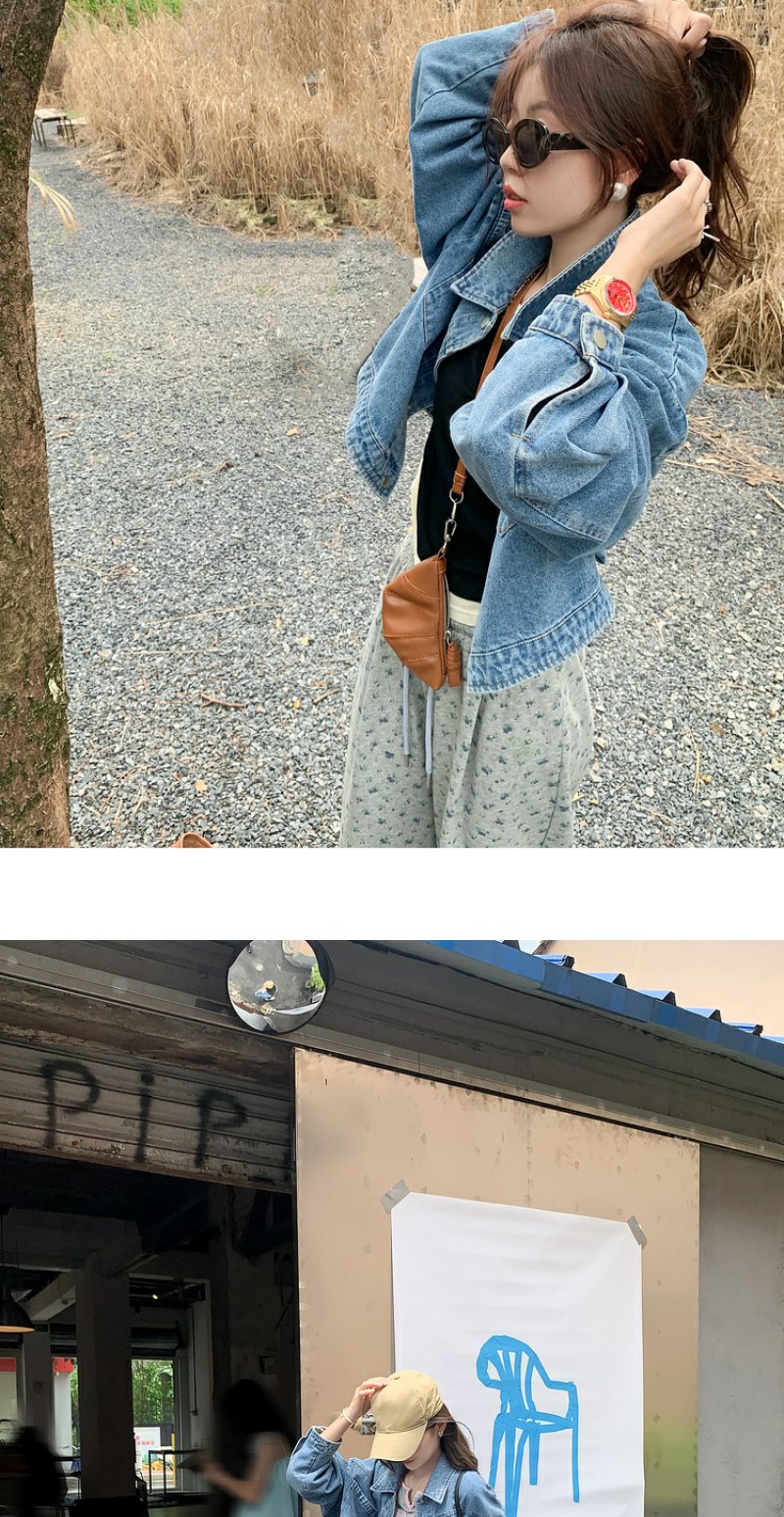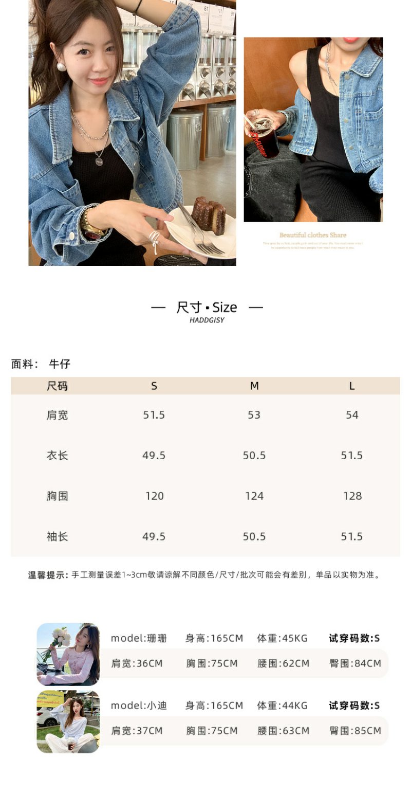 <曾小咸推荐>时髦牛仔蓝色短款牛仔外套