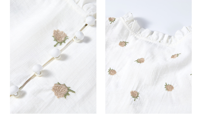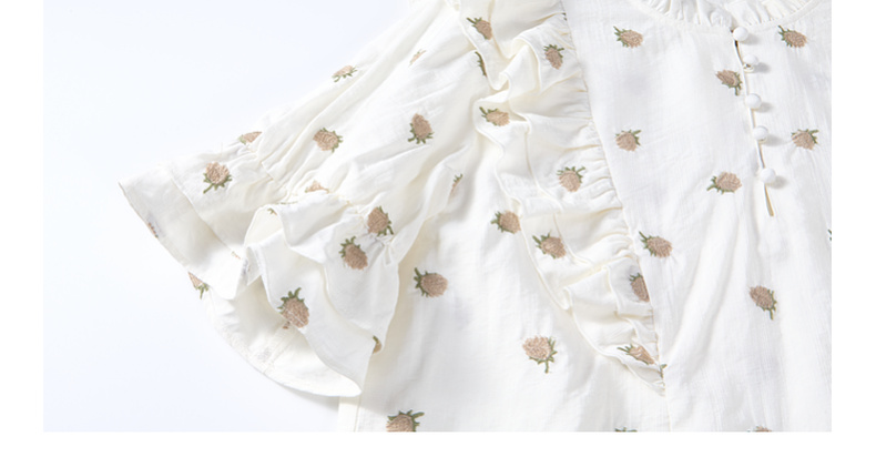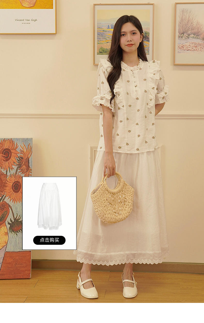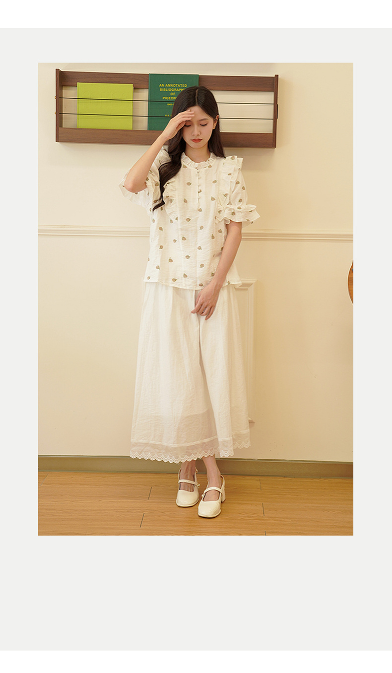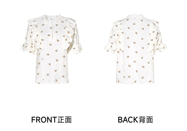 两三事飞花漫舞2024夏季新款小清新碎花刺绣荷叶边拼接衬衫女