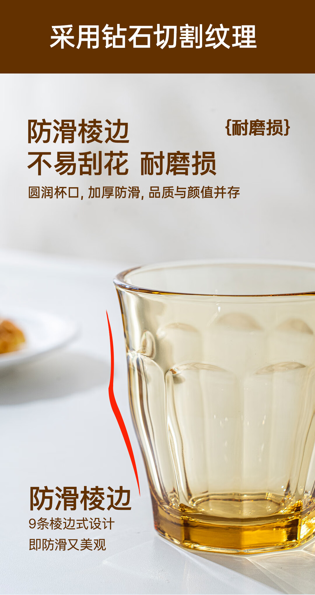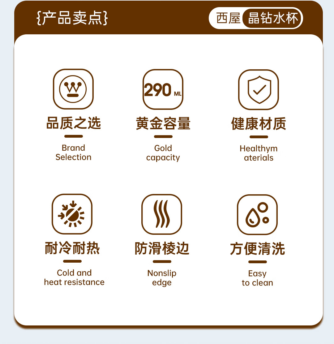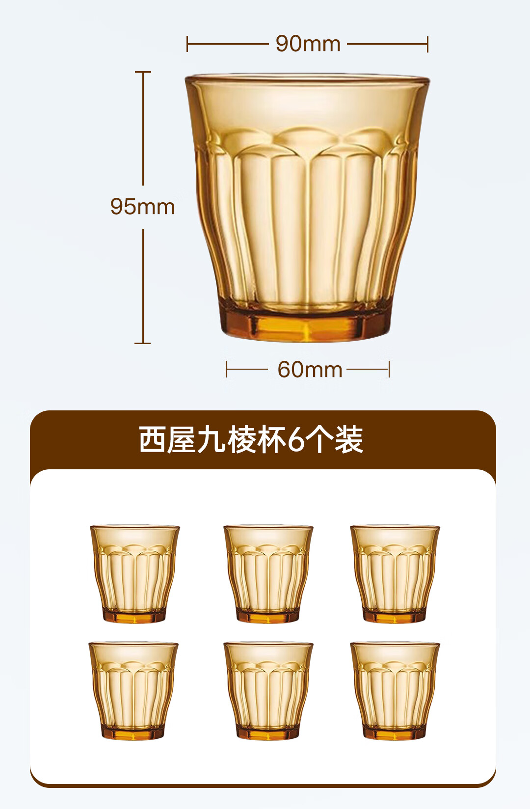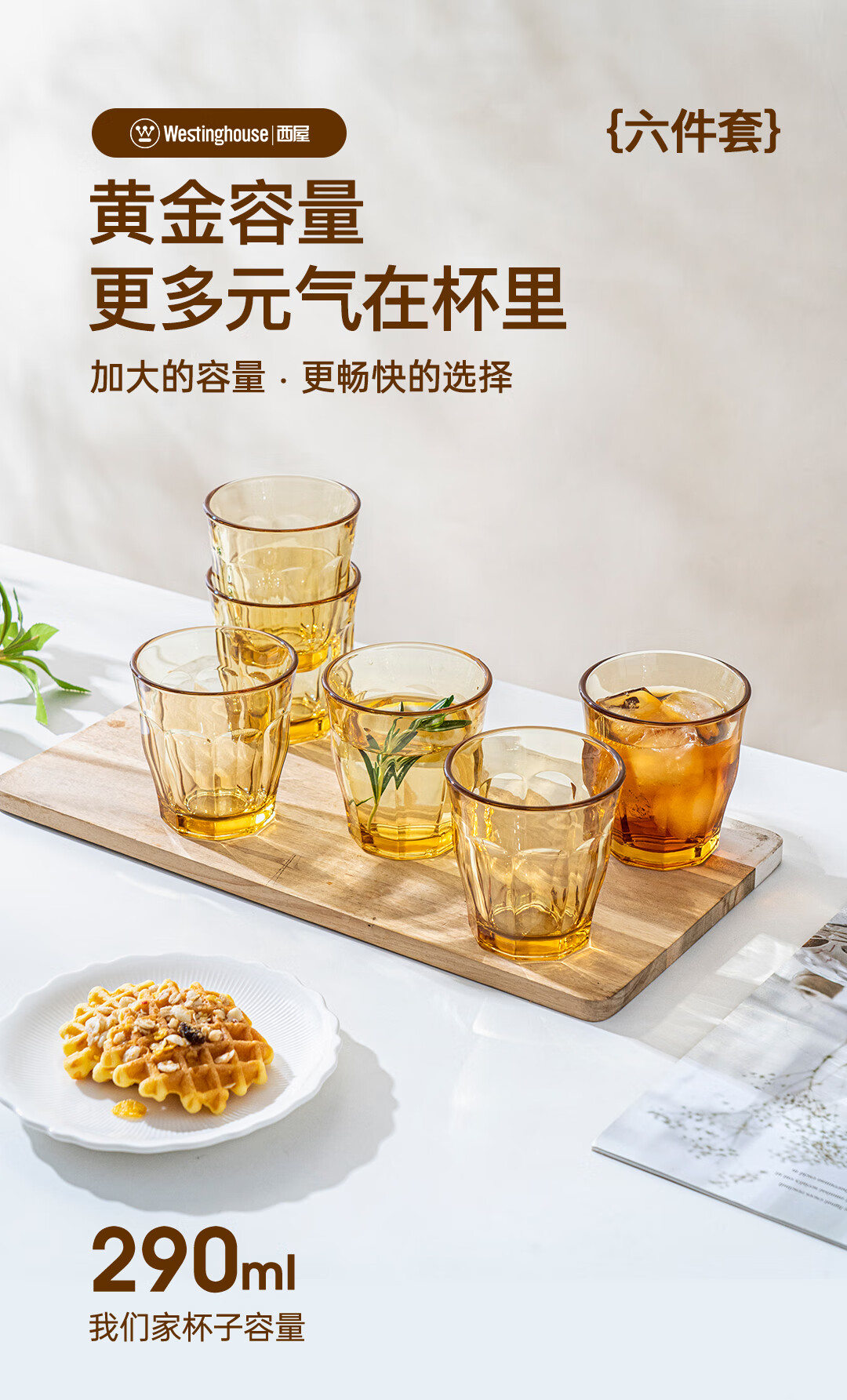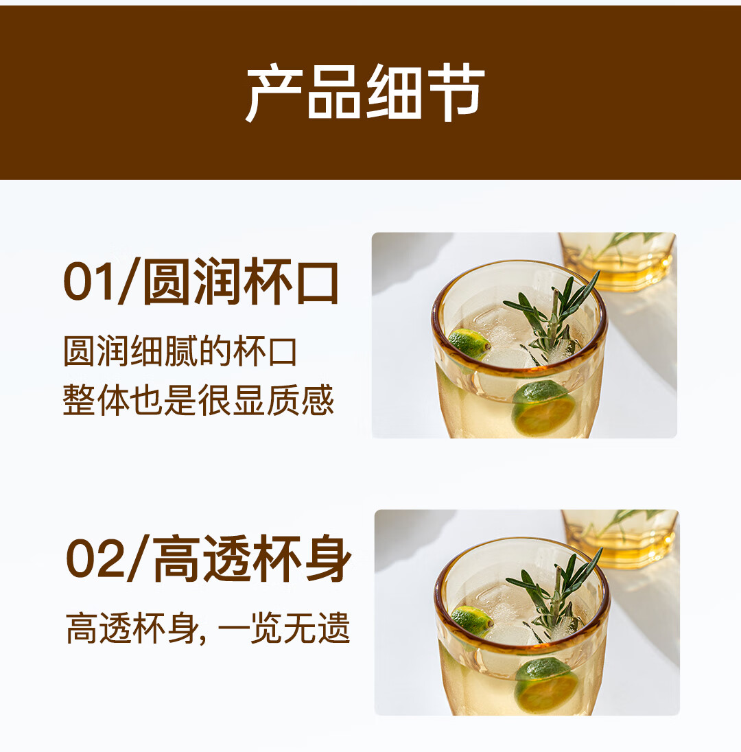 【西屋晶钻水杯6件套】西屋套装耐热玻璃杯琥珀色餐具高硼硅玻璃耐高温家用晶钻水杯6件套