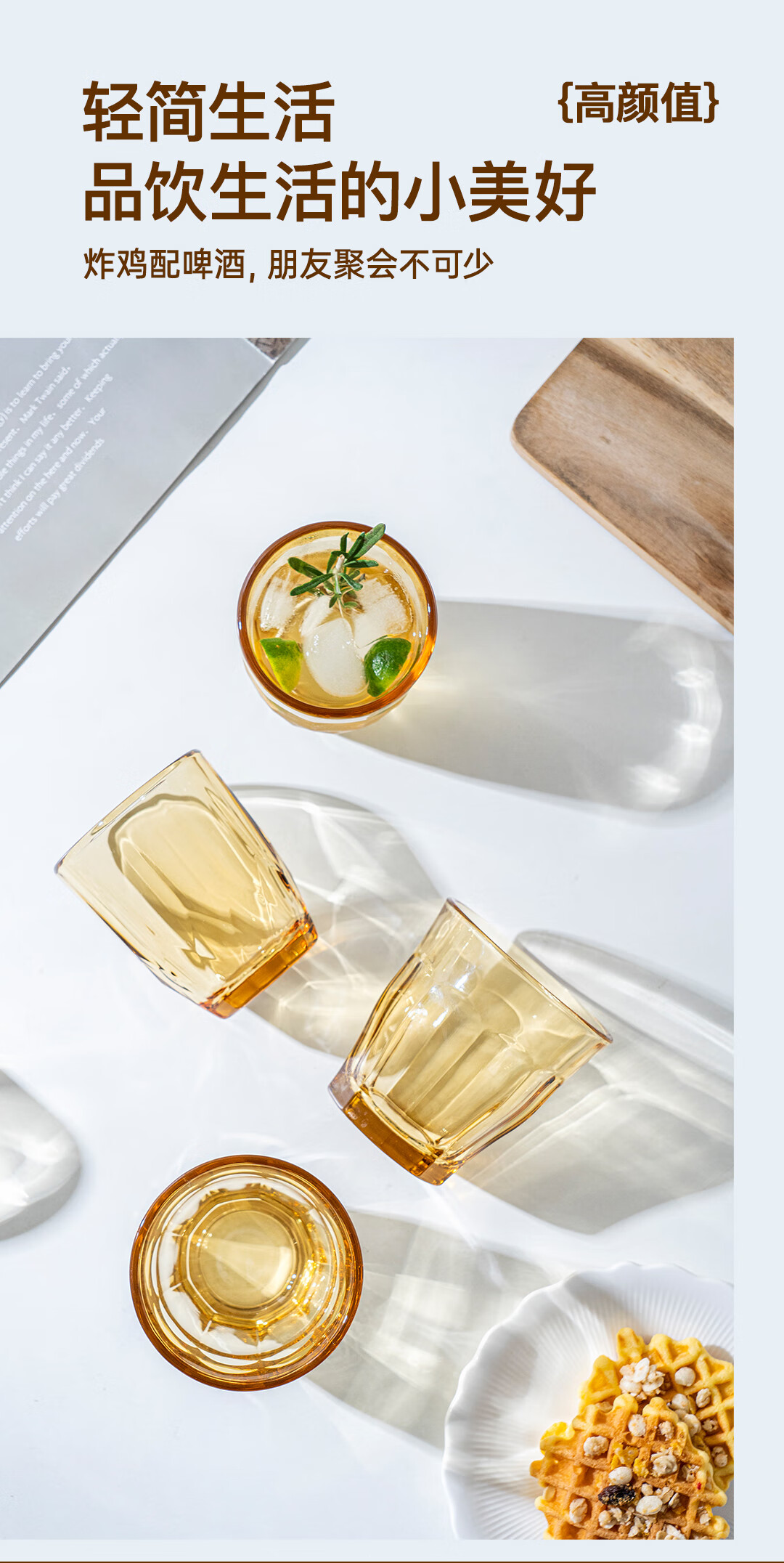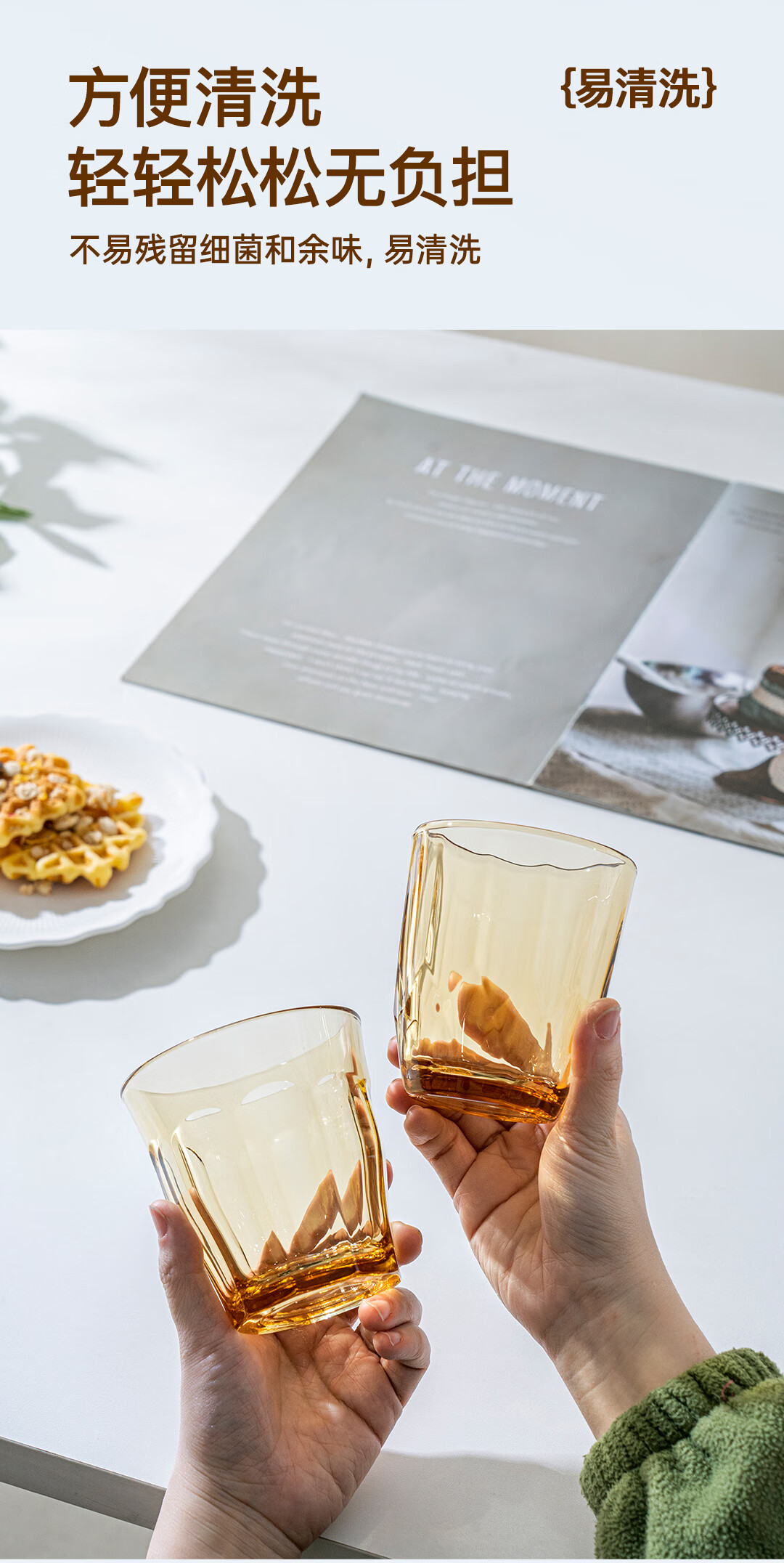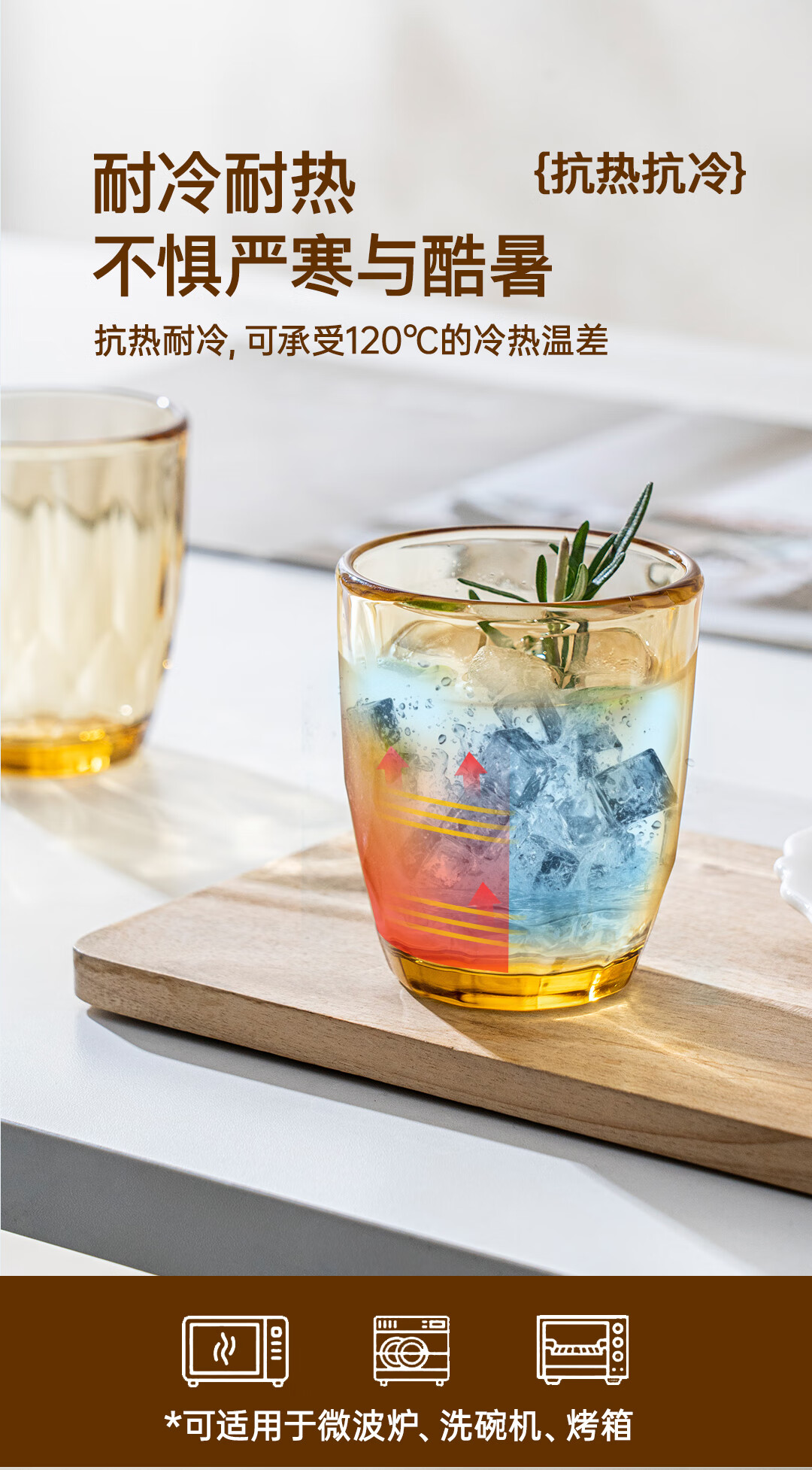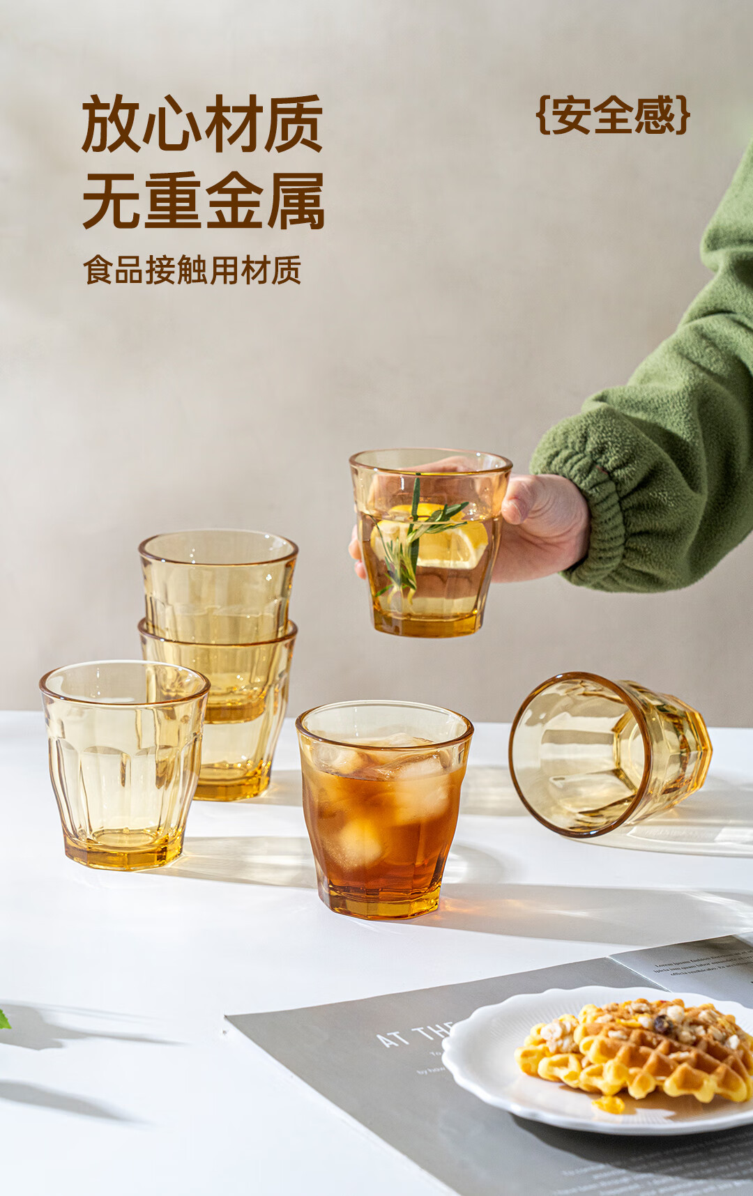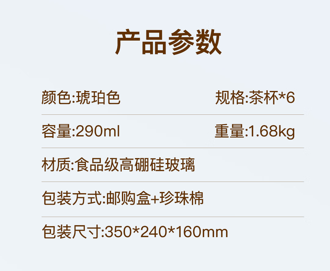 【西屋晶钻水杯6件套】西屋套装耐热玻璃杯琥珀色餐具高硼硅玻璃耐高温家用晶钻水杯6件套