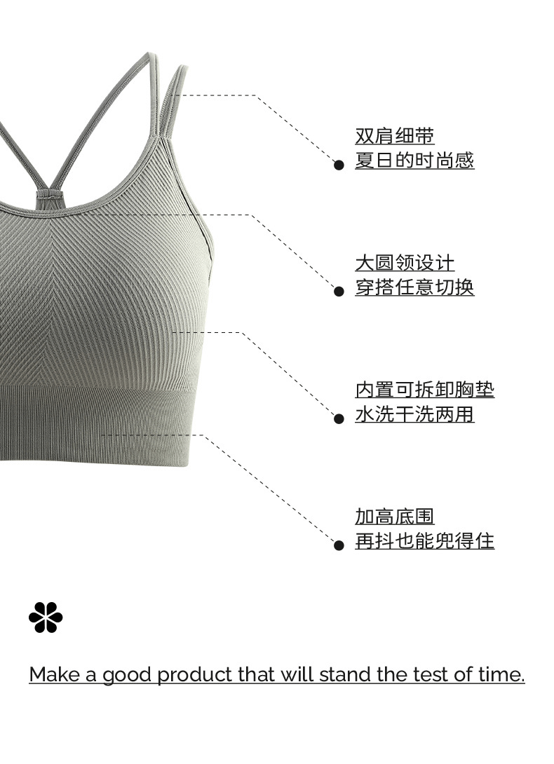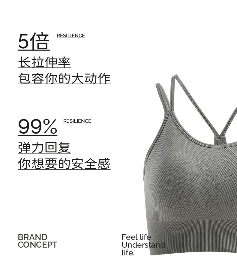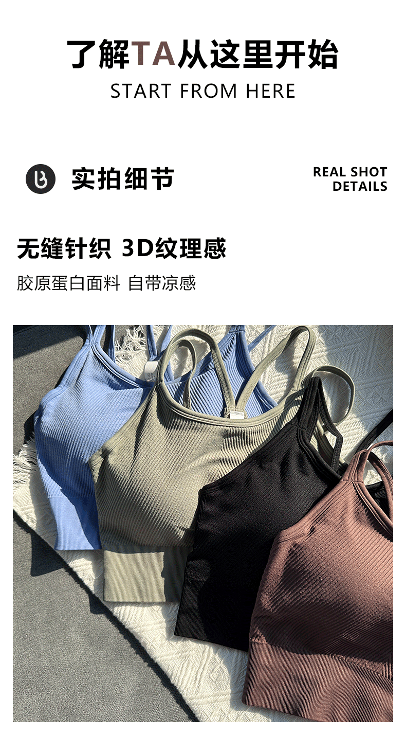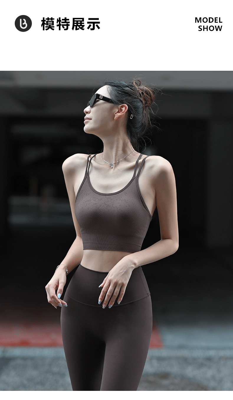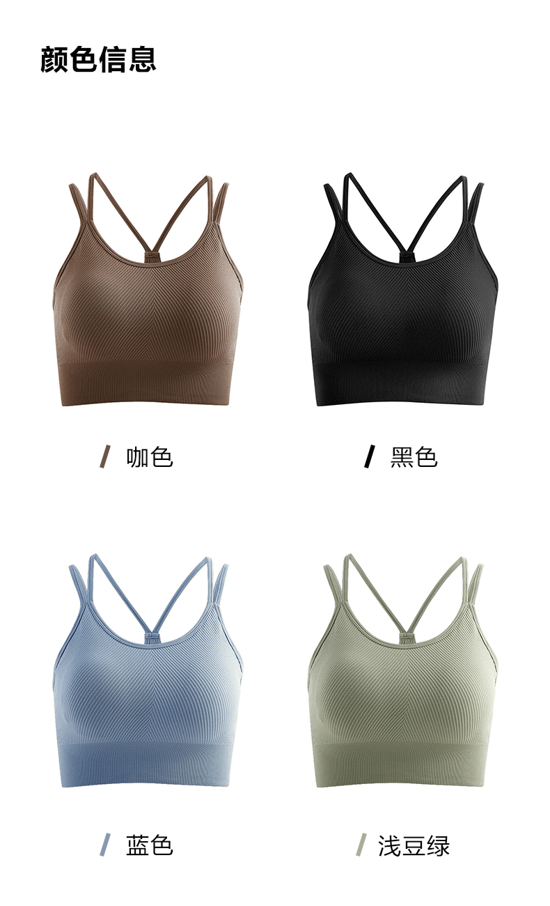 Beemen低强度运动内衣 双肩带瑜伽美背 3D纹理运动内衣 胶原蛋白因子 亲肤柔软 不紧勒无束缚