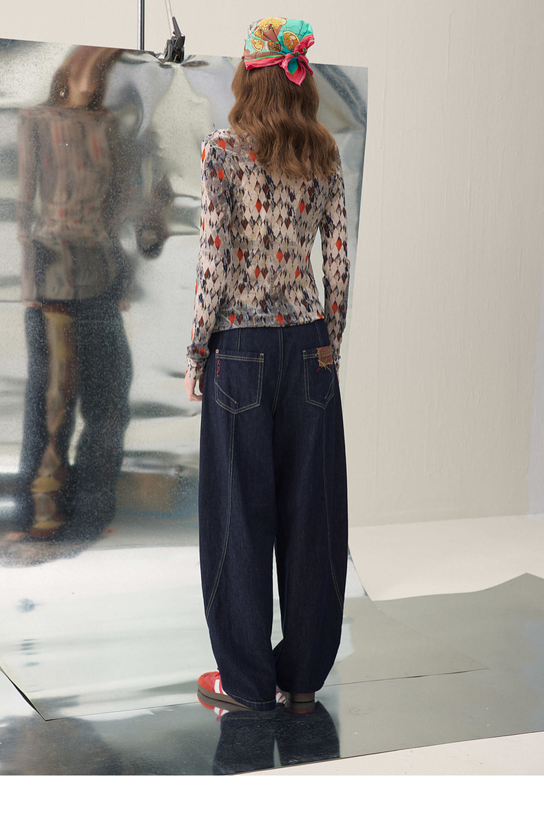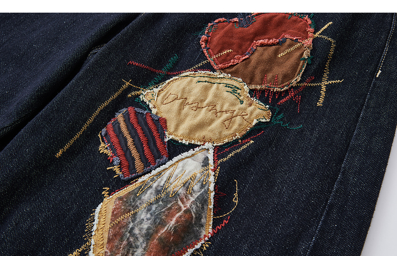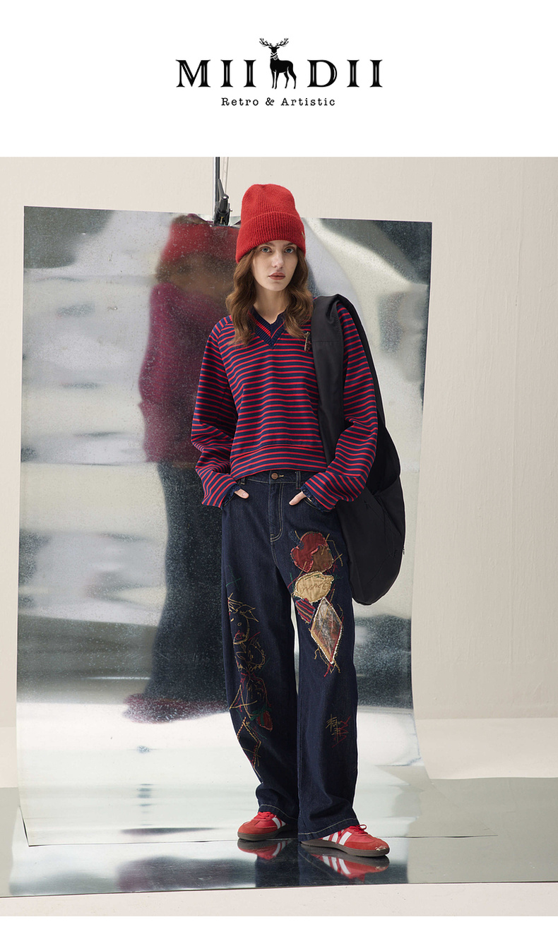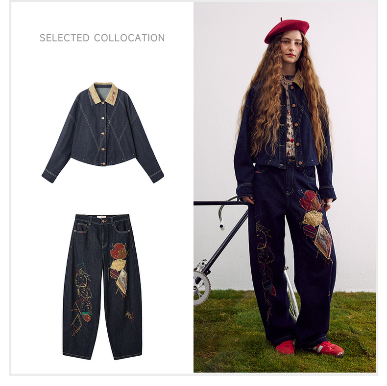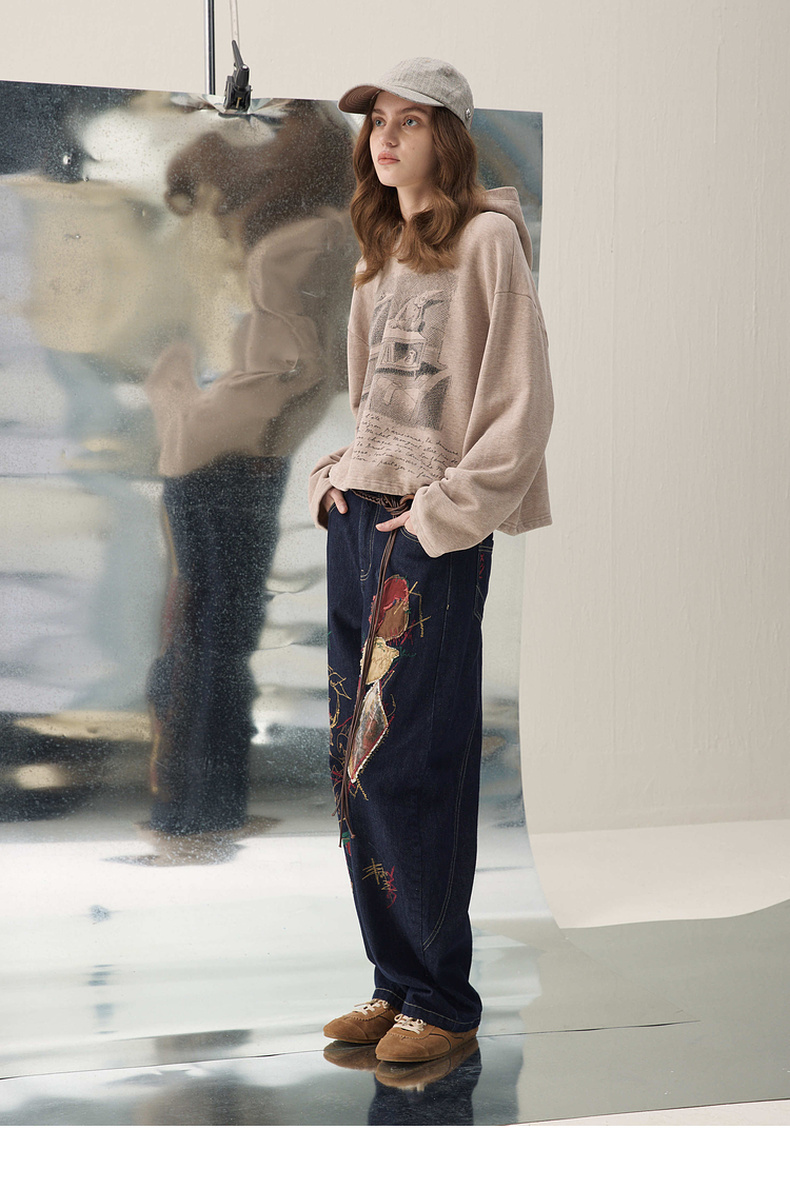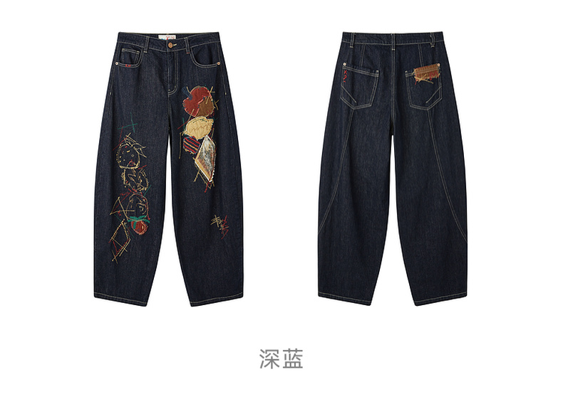 谜底香蕉裤长裤2026年春季新品显腿长贴布绣花牛仔裤女261MJ0018
